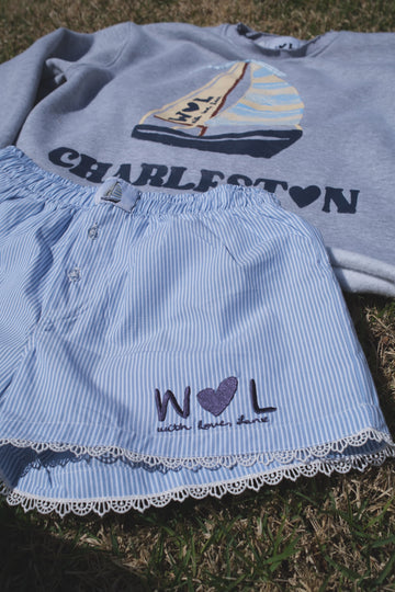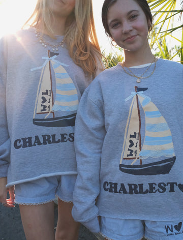 Claire Lank designed an exclusive sailboat crewneck PLUS one of a kind handmade tees for the charming city of Charleston.
