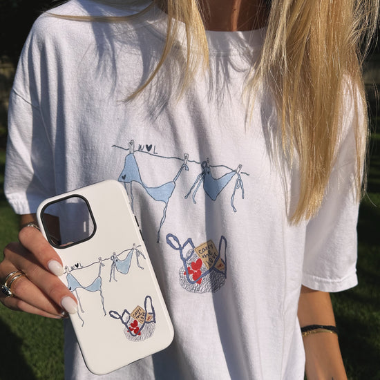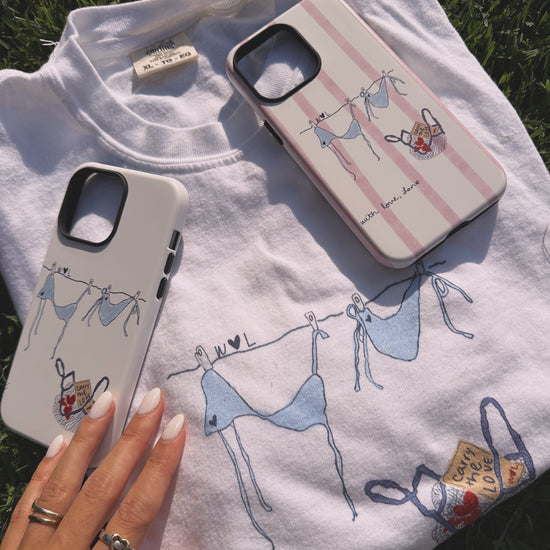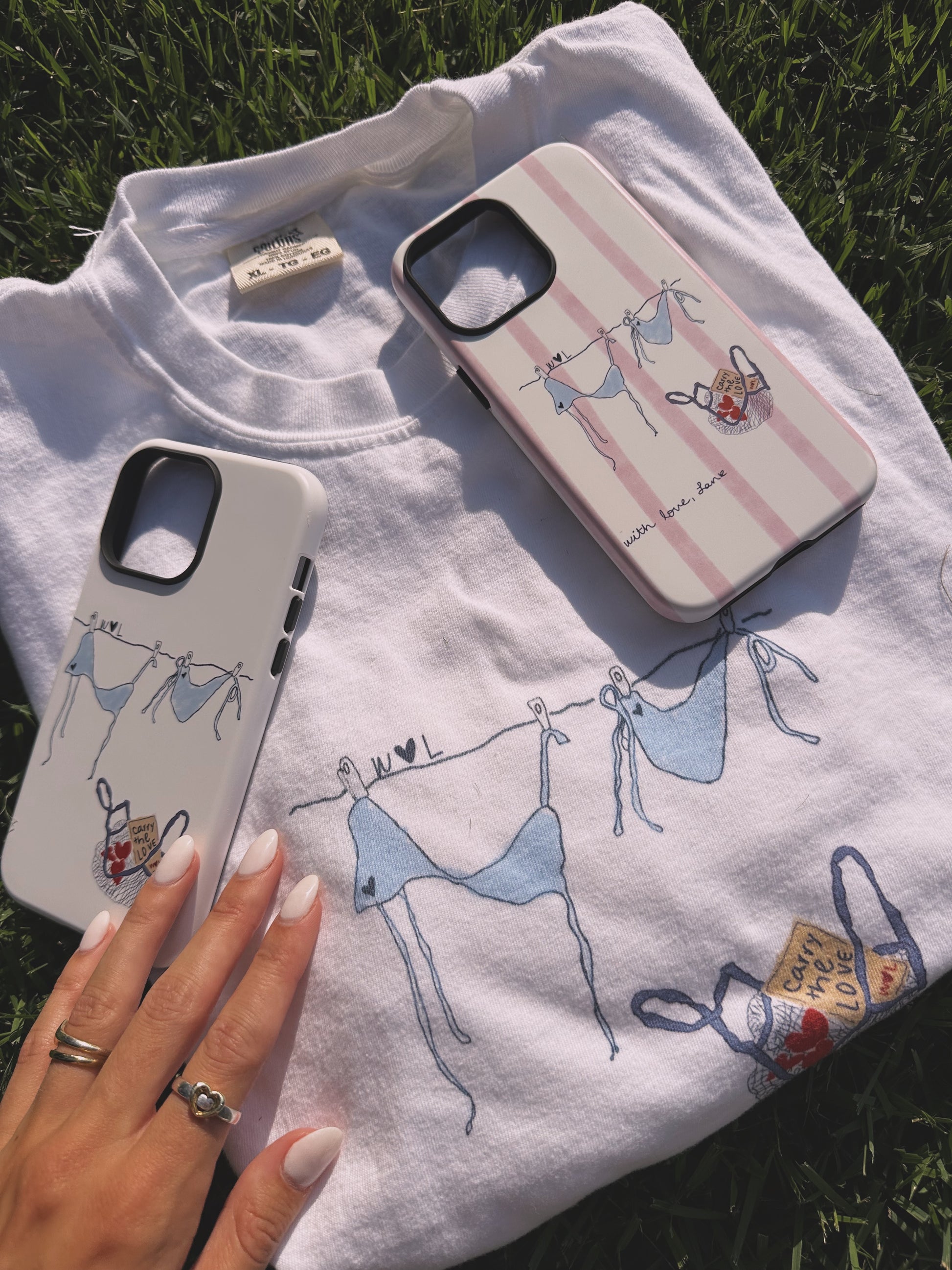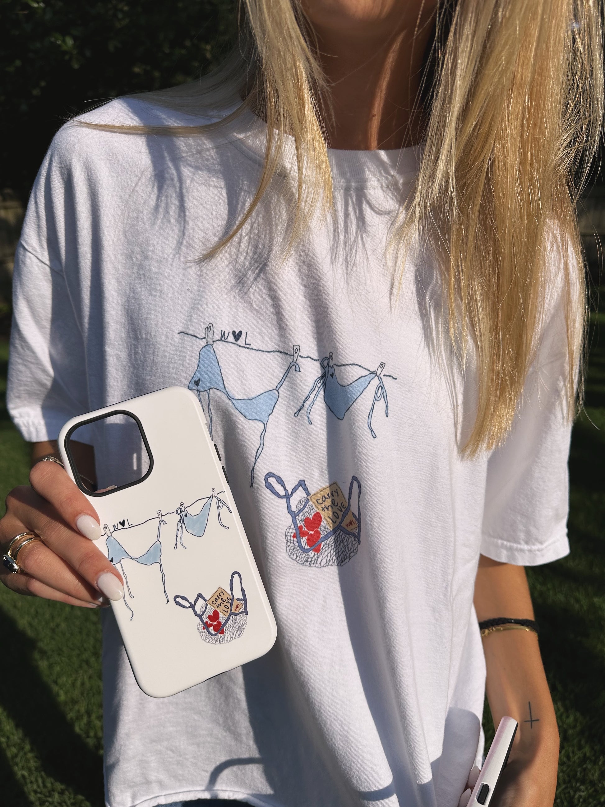 This design depicts the hand-drawn WLL doodle featured on the best-selling Basket and Bikini Tee. In this particular design, the background is neutral and simple -- matching just about any outfit!