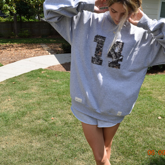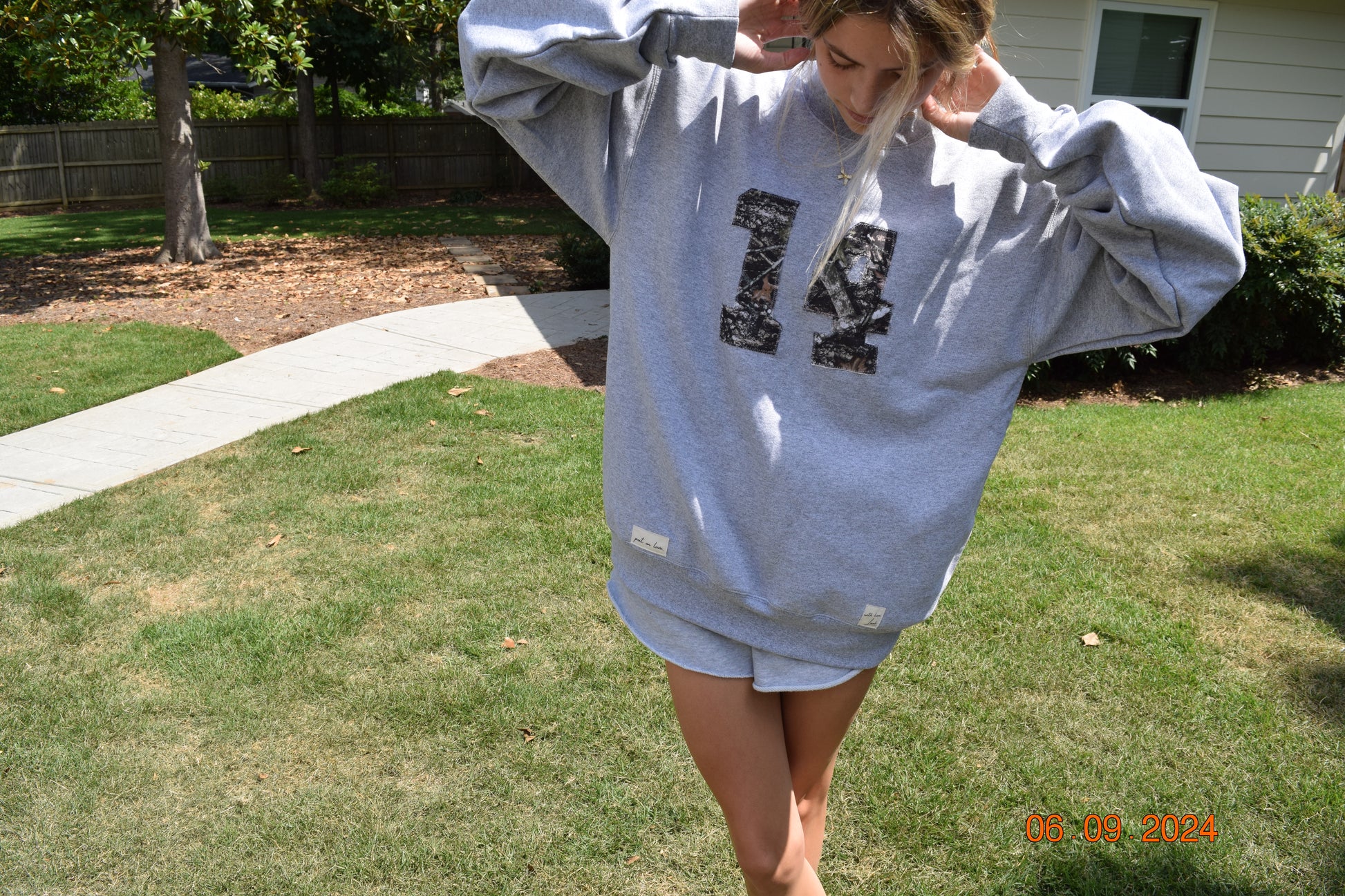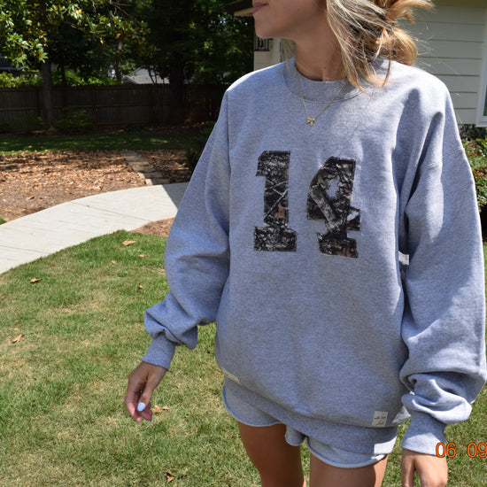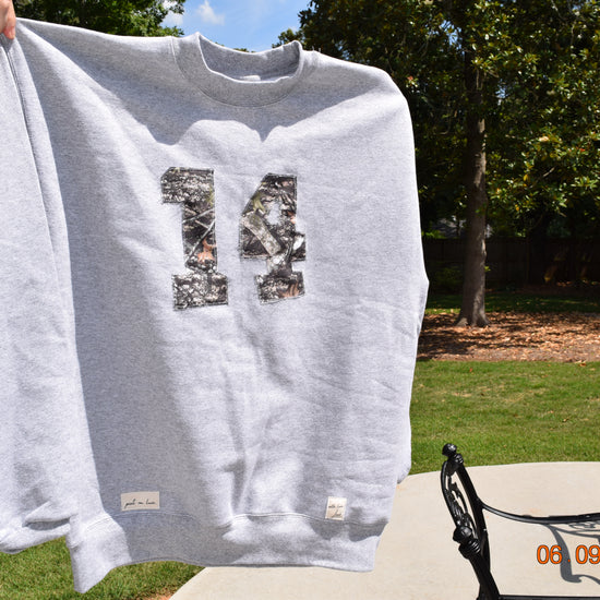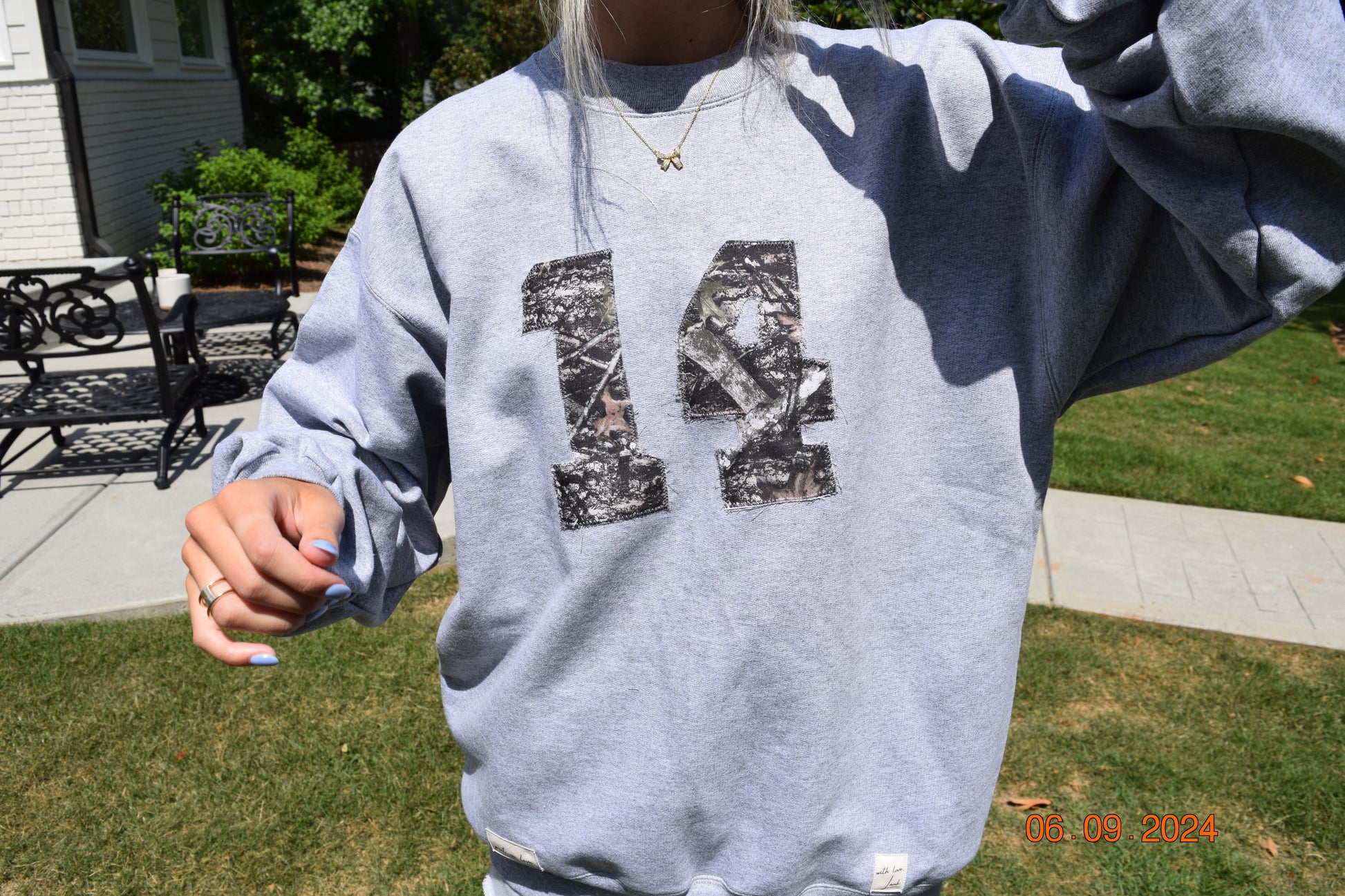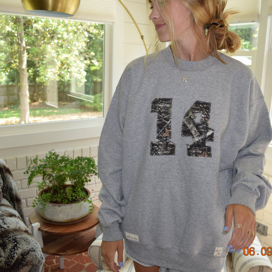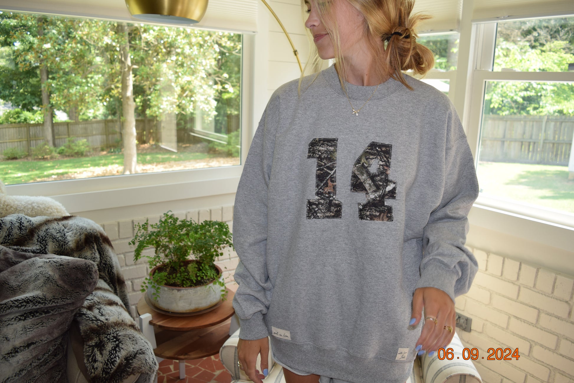 The exclusive #14 camo crewneck is HERE! This piece features the labels “put on love” and With love, Lank on the front. Handmade and stitched with love for you!