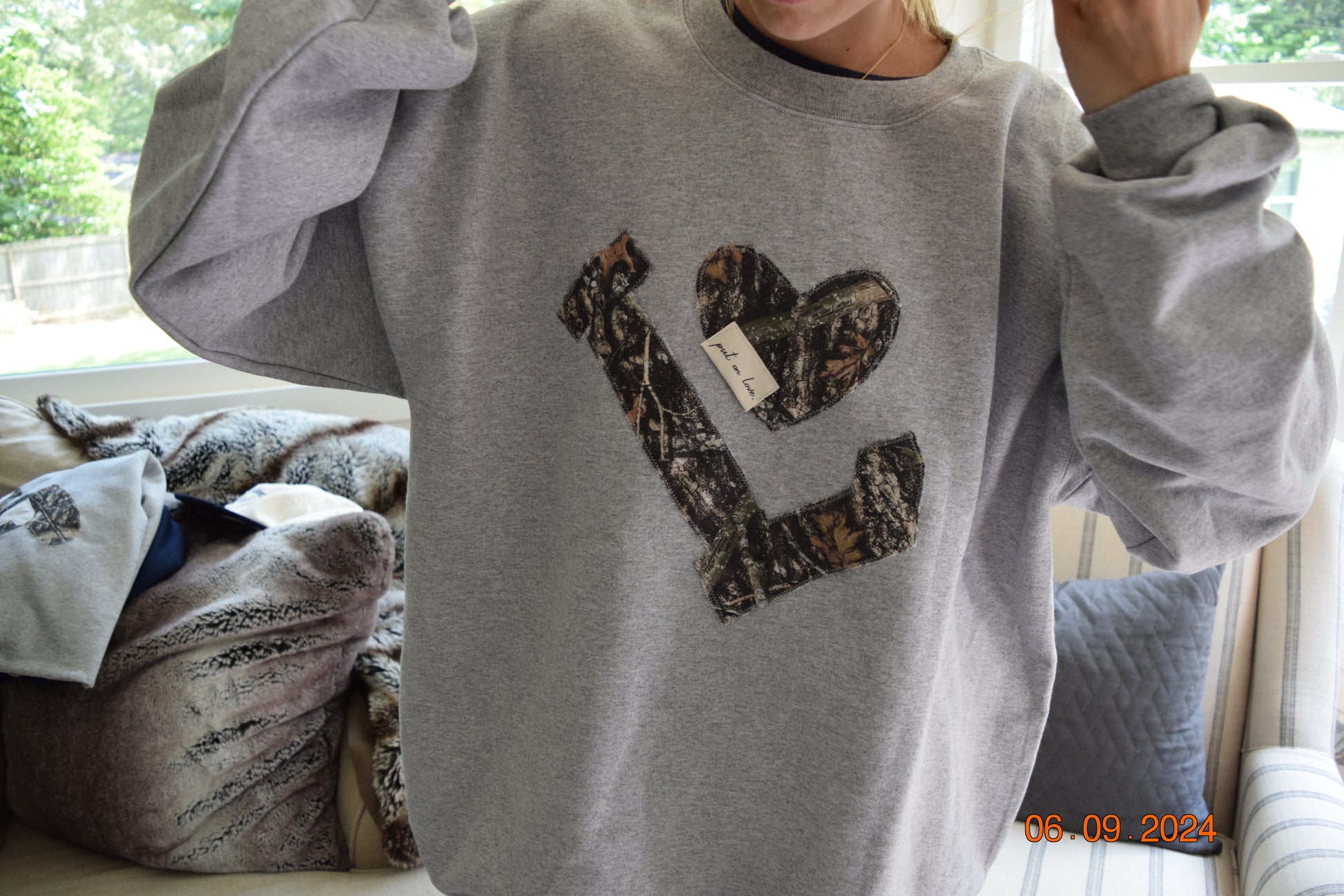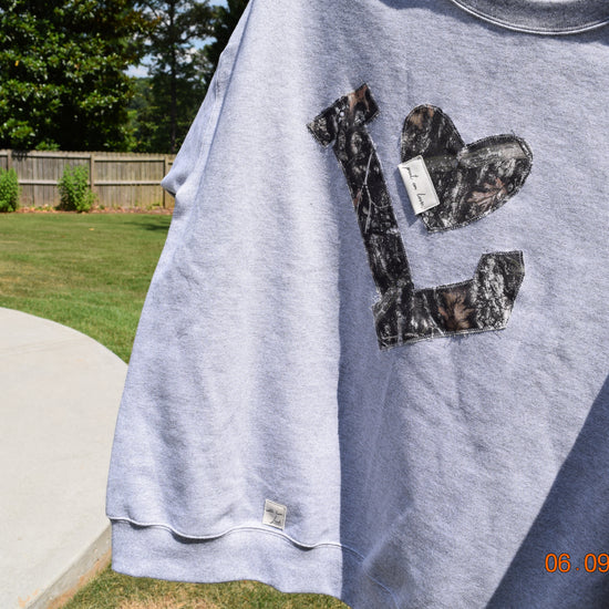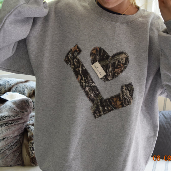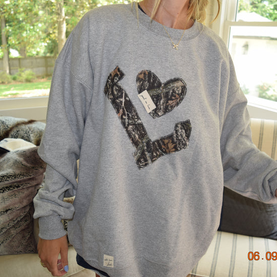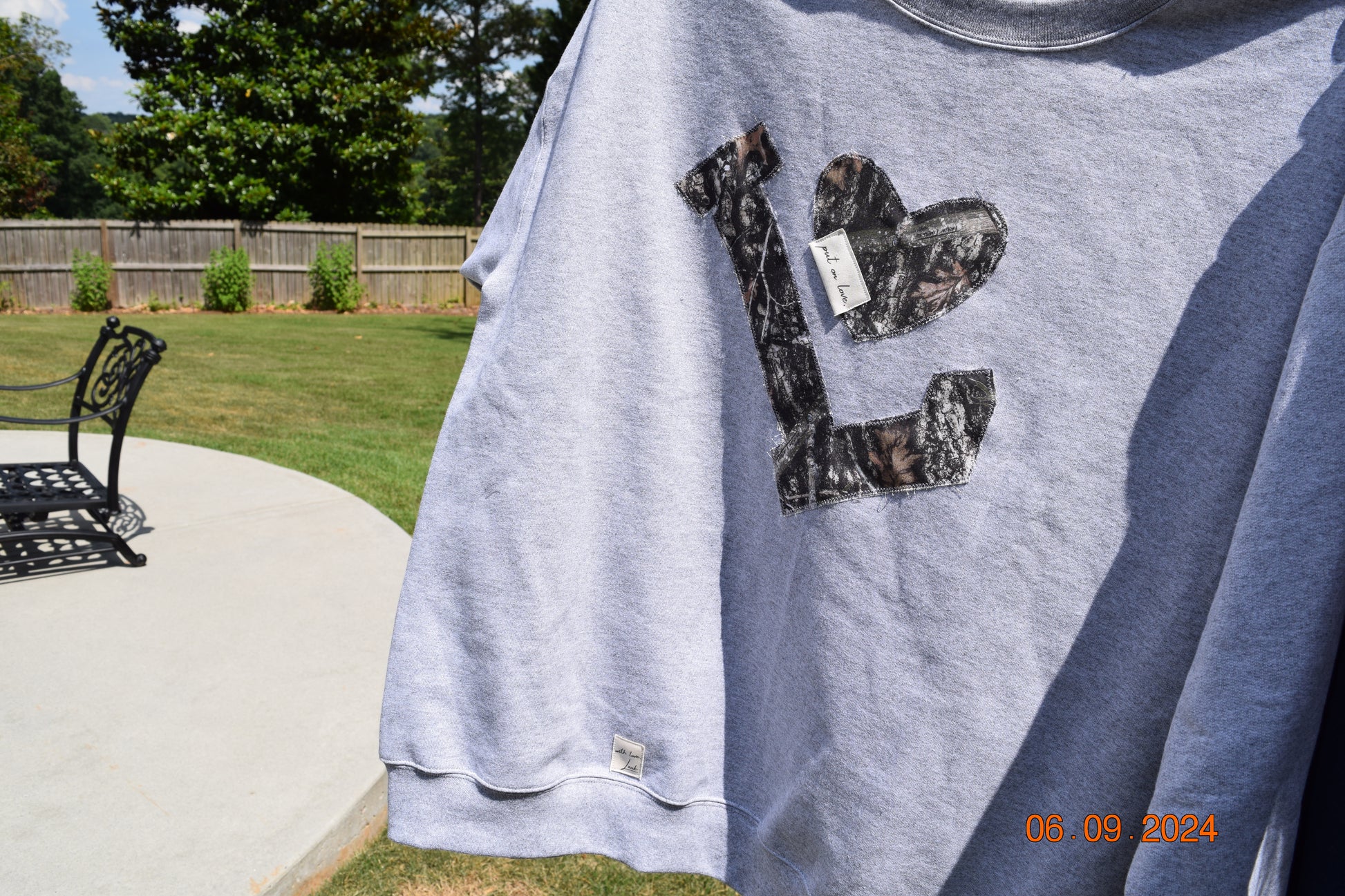 This one of a kind piece features a camo letter L representing “Lank”! I love the vintage look and style of this crewneck.