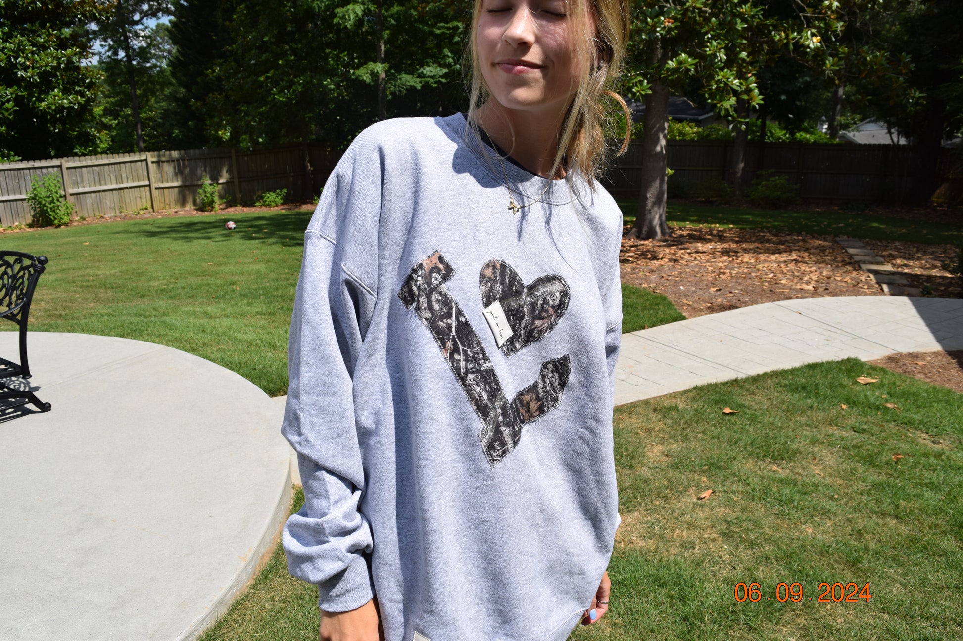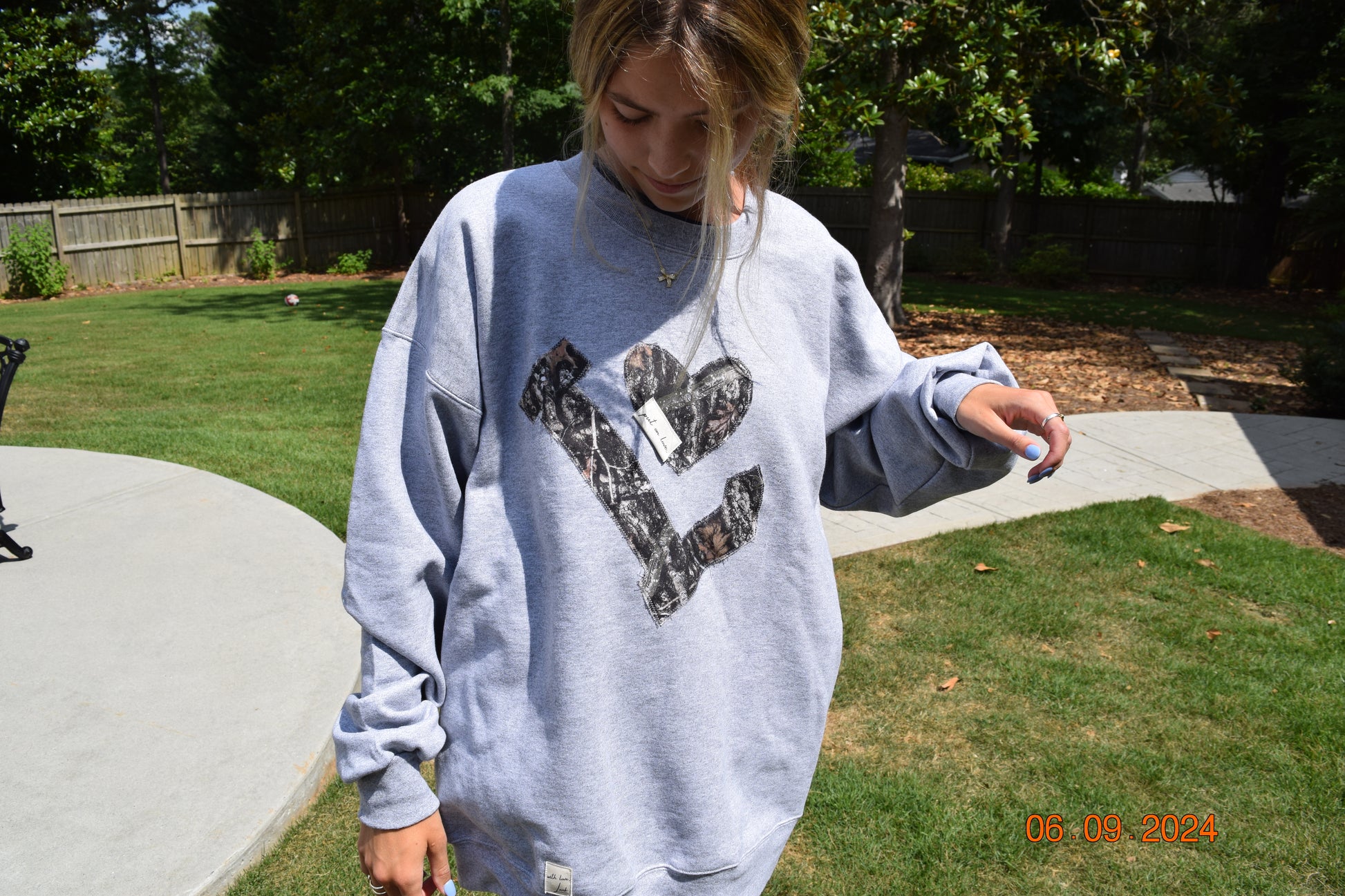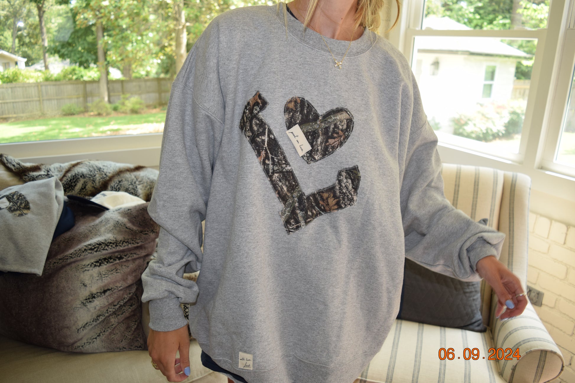 This one of a kind piece features a camo letter L representing “Lank”! I love the vintage look and style of this crewneck.
