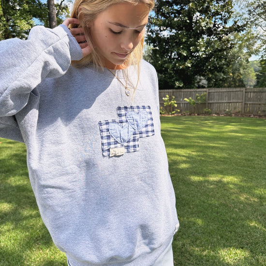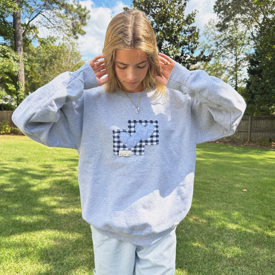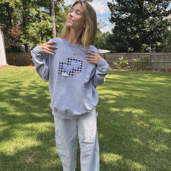 Cut and sewn with love, each piece in this collection is one of a kind! Step into fall in style and comfort with this cozy crewneck.
