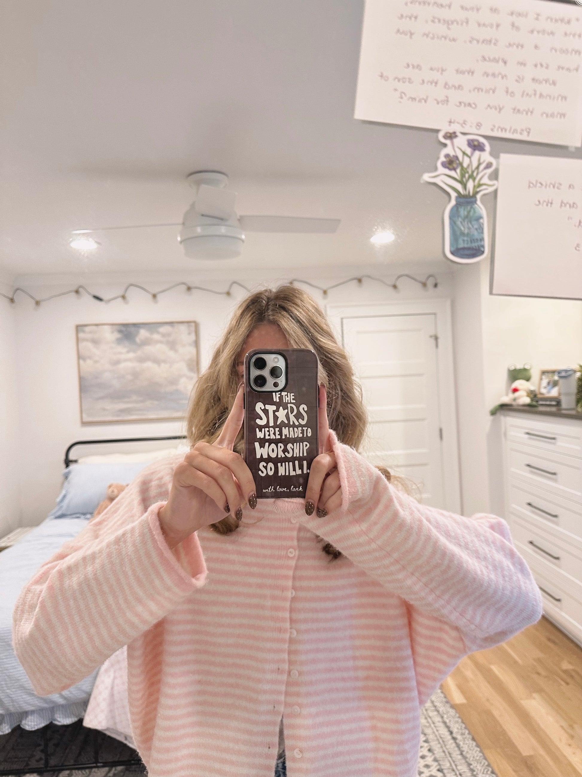 Carry scripture with you everywhere. This case features a hand-drawn design inspired by Psalm 19:1—“The heavens declare the glory of God”—and the worship song “So Will I.” Sketched with a personal, timeless touch, the design serves as a daily reminder that if creation was made to worship, so will we. It’s a declaration of faith you can hold in your hands!