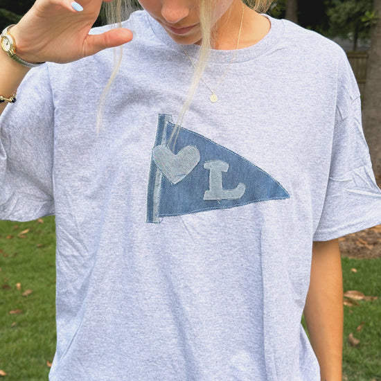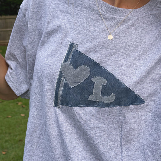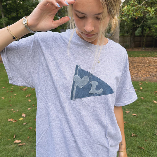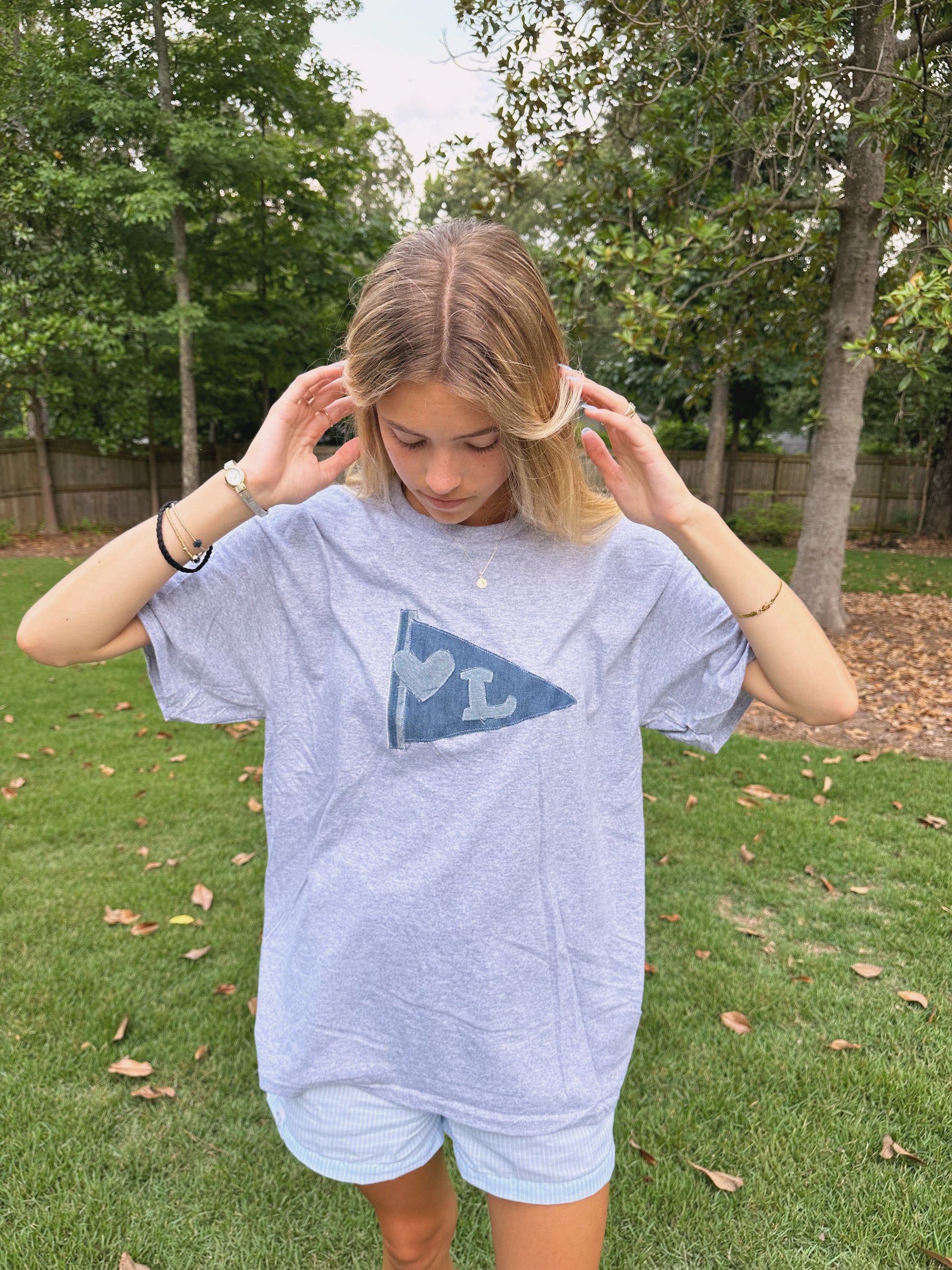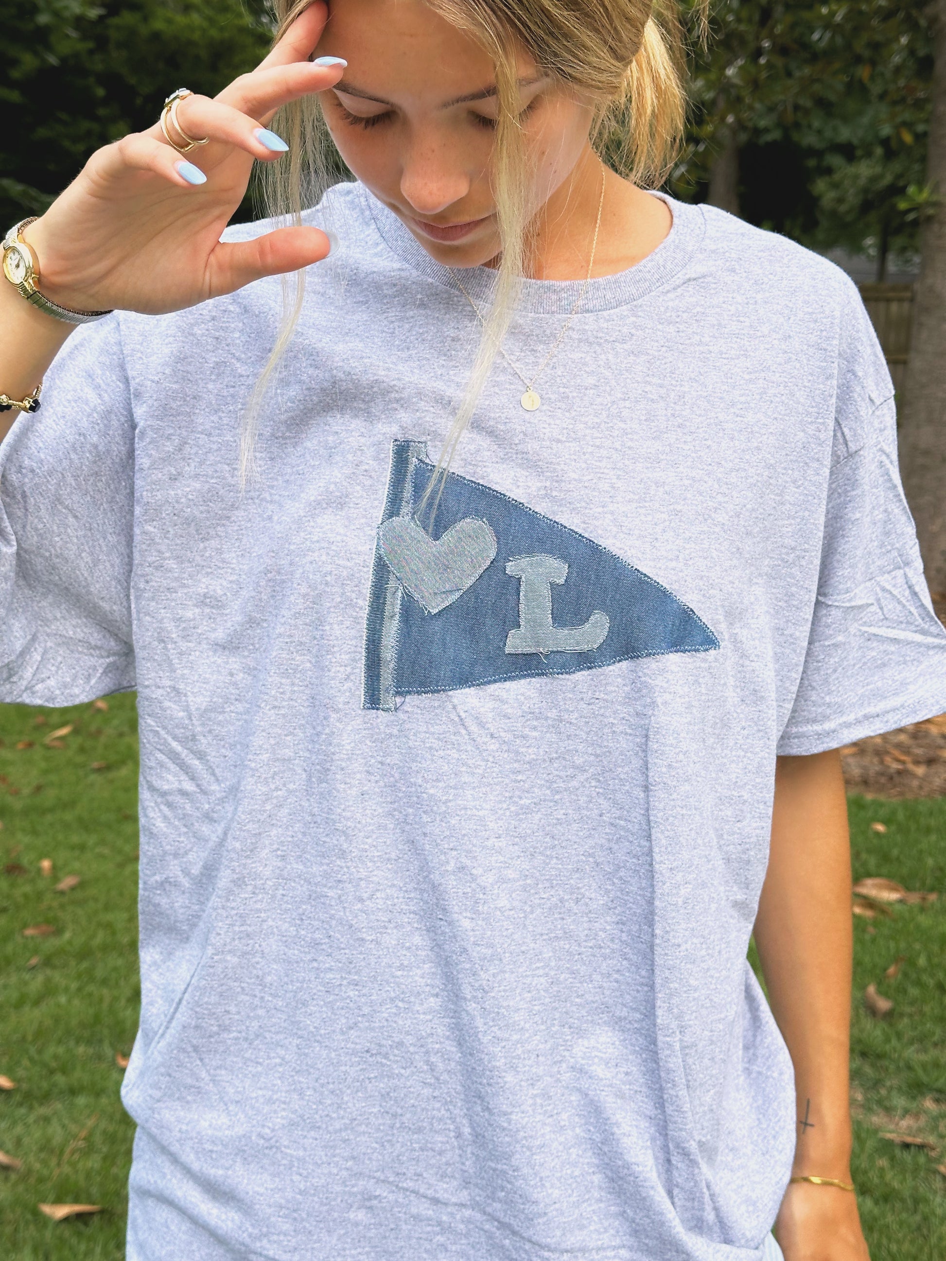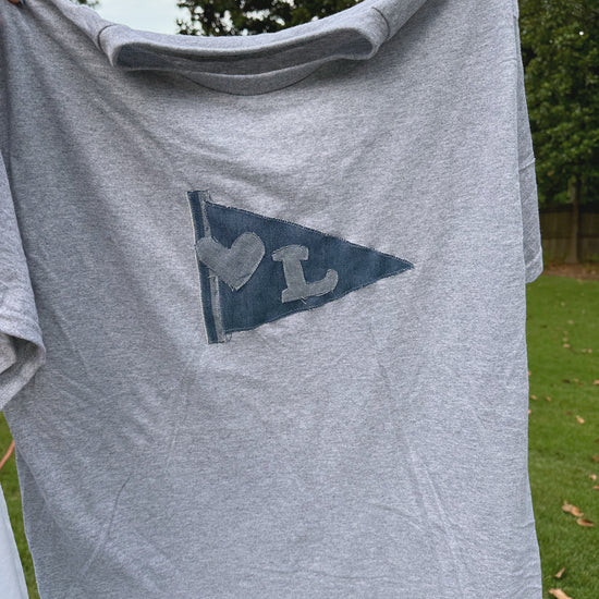 The signature With love, Lank name has been stitched in a symbolized form of an heart & an L in this tee. The denim flag compliments any outfit and gives a coastal vibe! Each stitch has been sewn with love.
