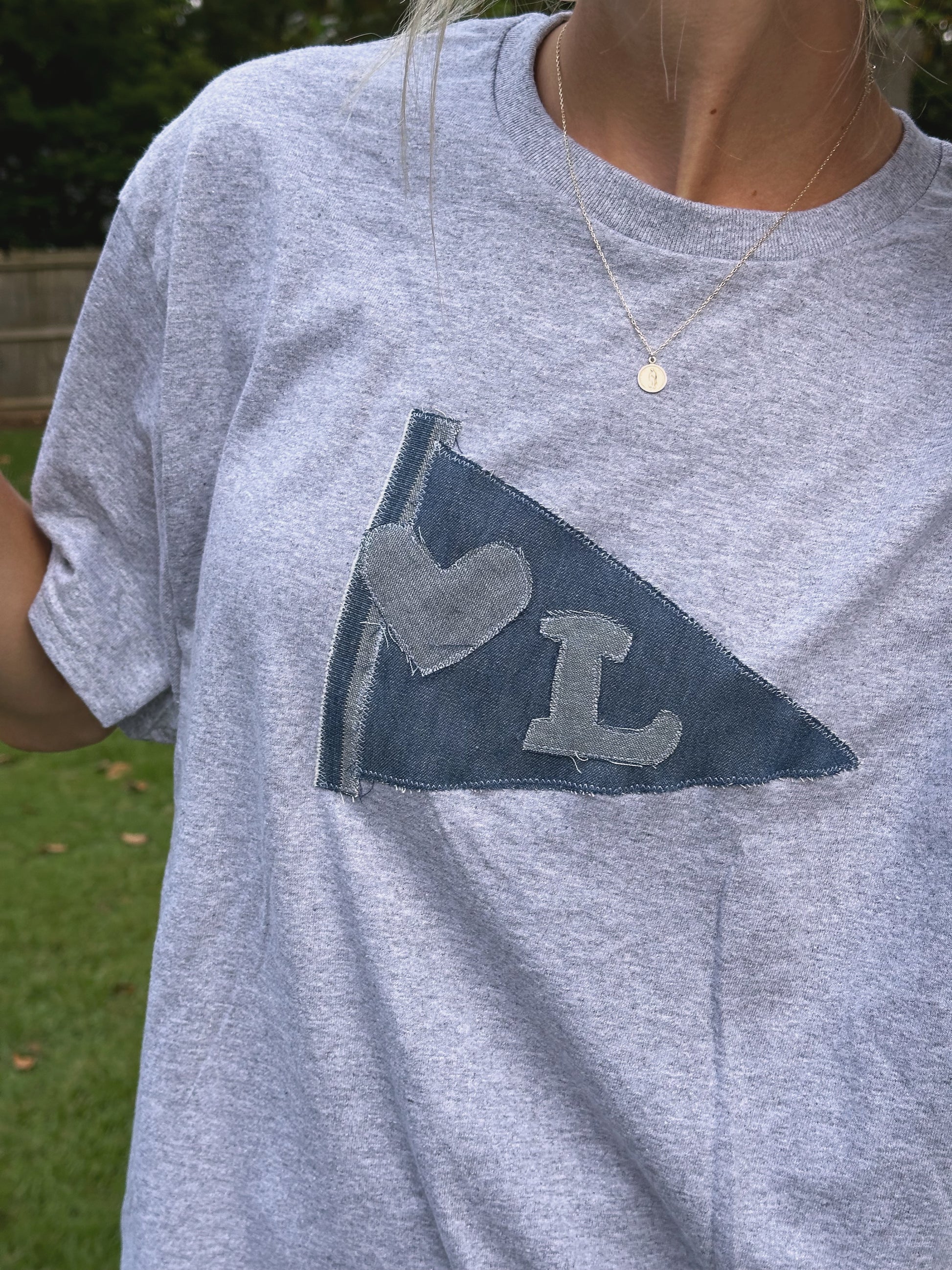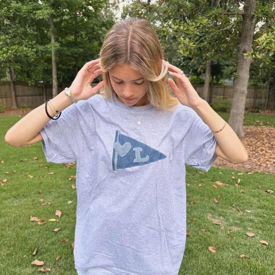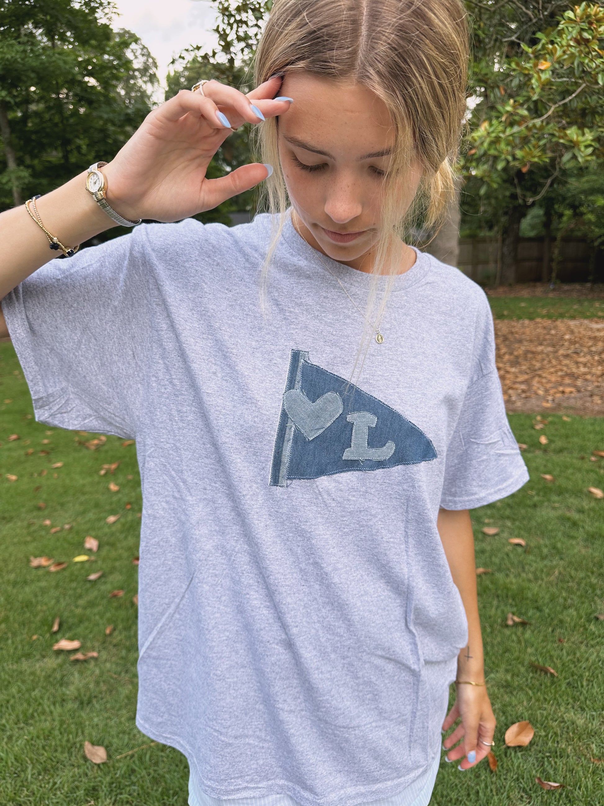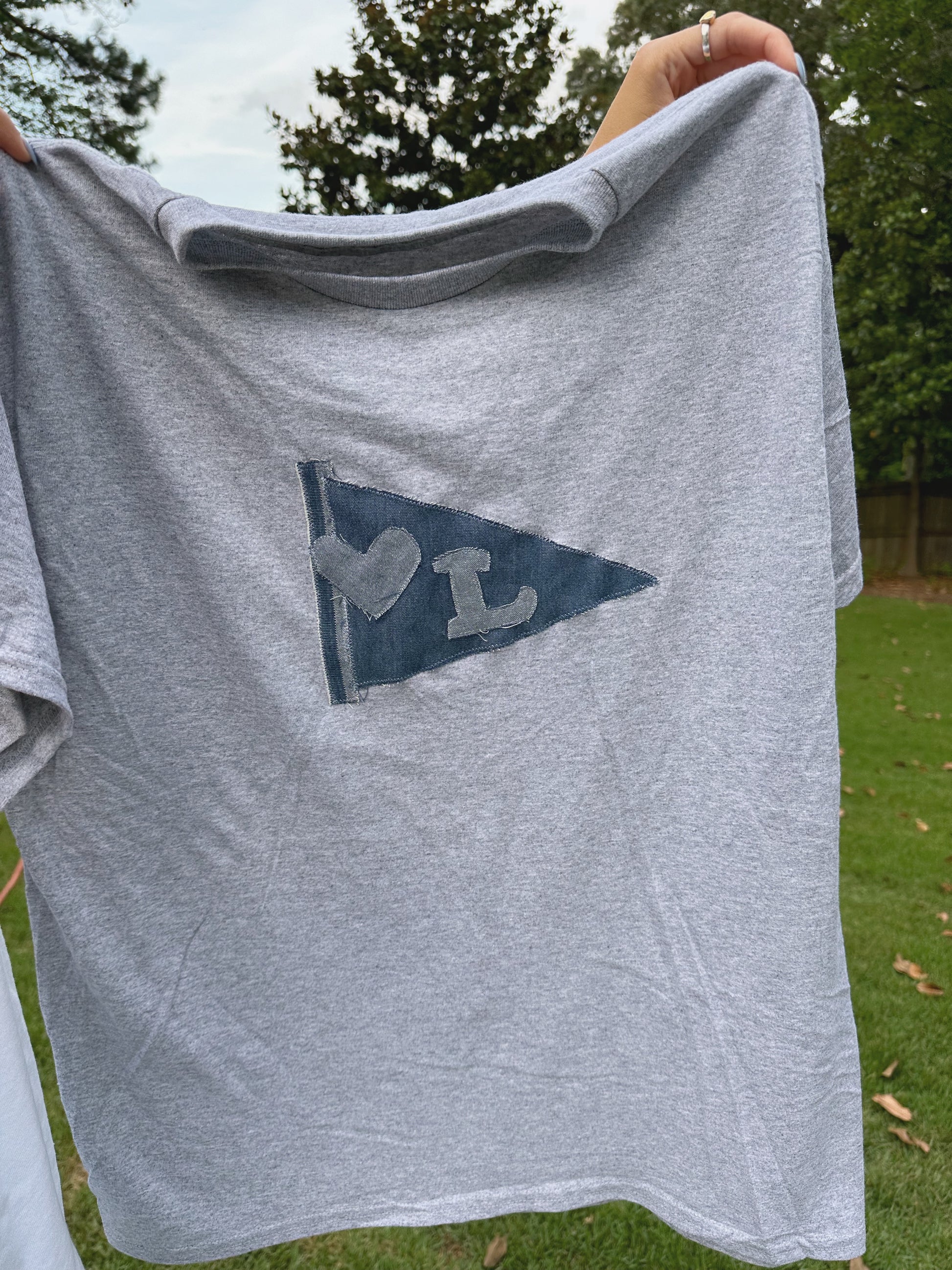 The signature With love, Lank name has been stitched in a symbolized form of an heart & an L in this tee. The denim flag compliments any outfit and gives a coastal vibe! Each stitch has been sewn with love.