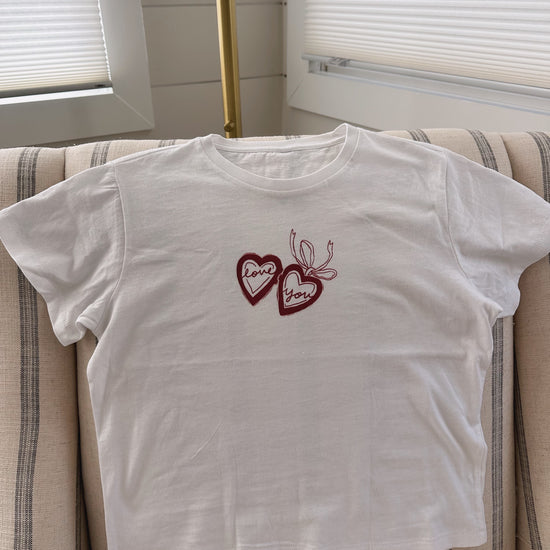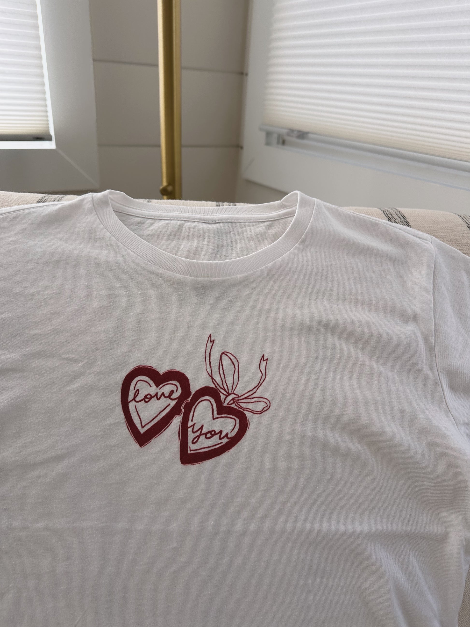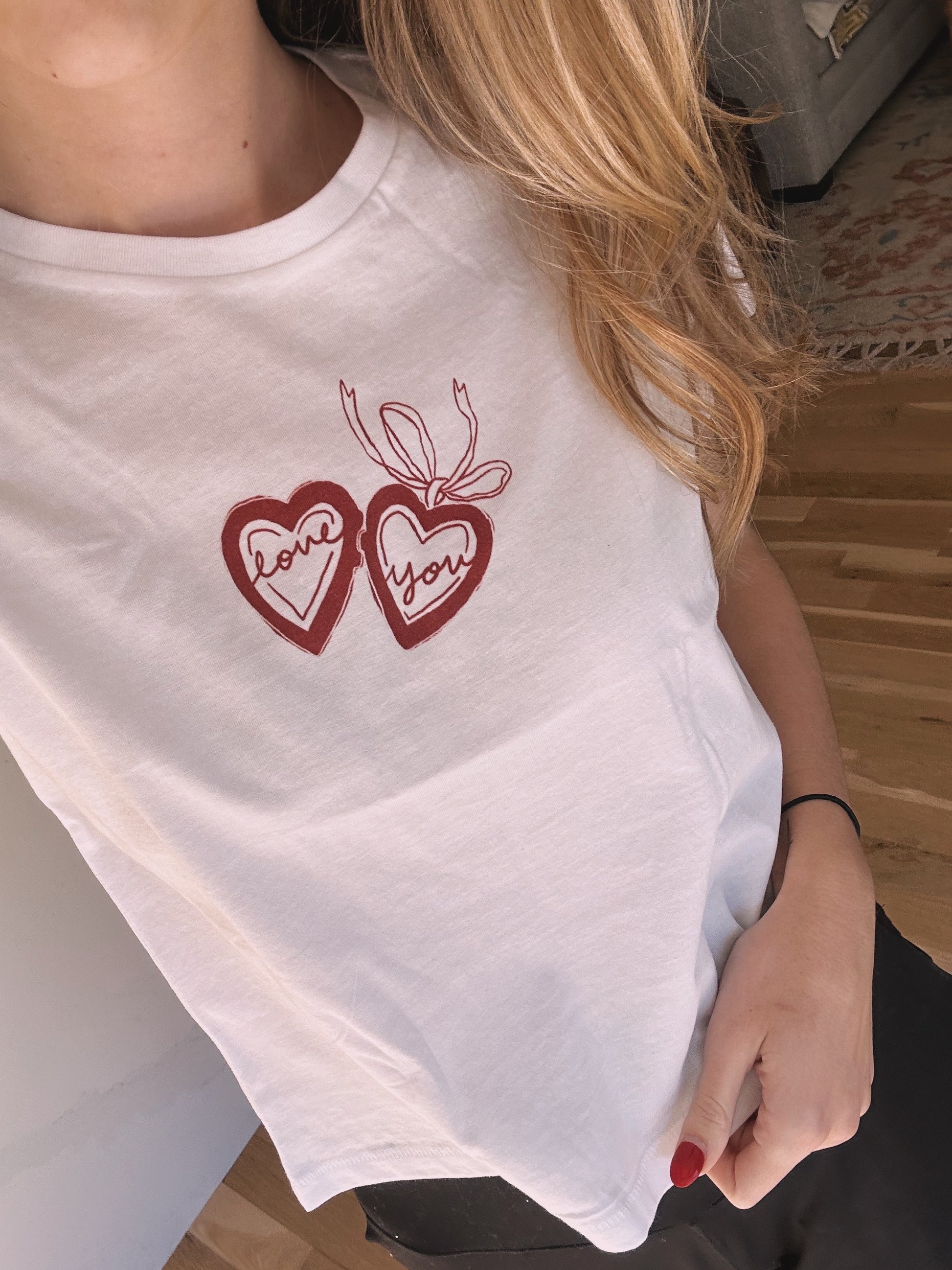 This dainty hand drawn locket subtly accents any pair of jeans or leggings! Cozy up in this lightweight tee for Vday!