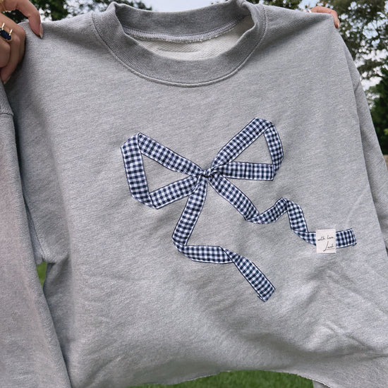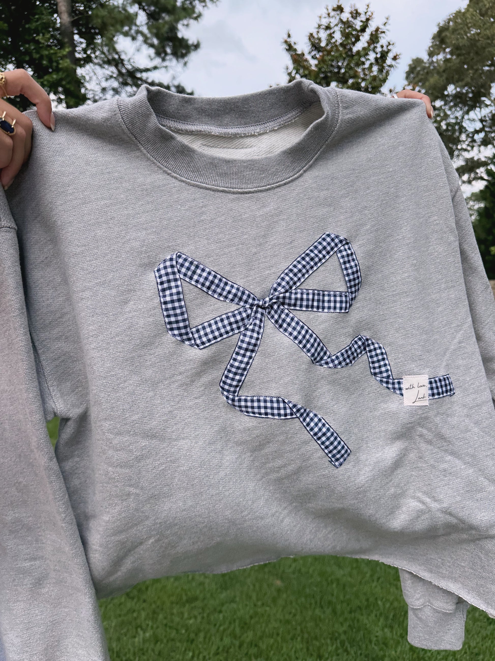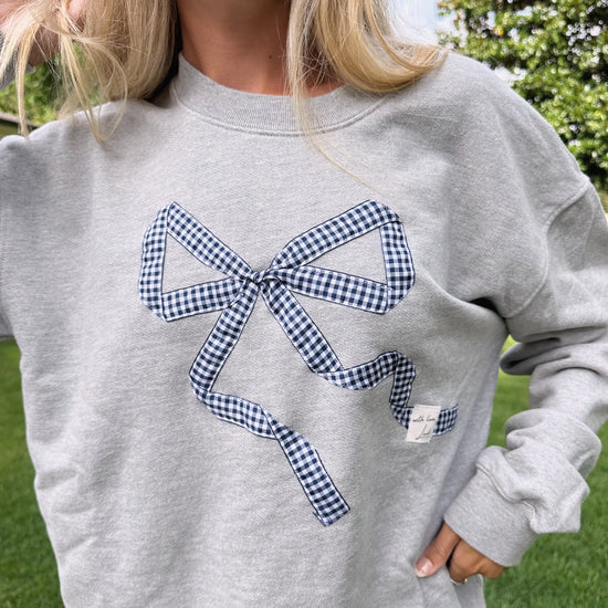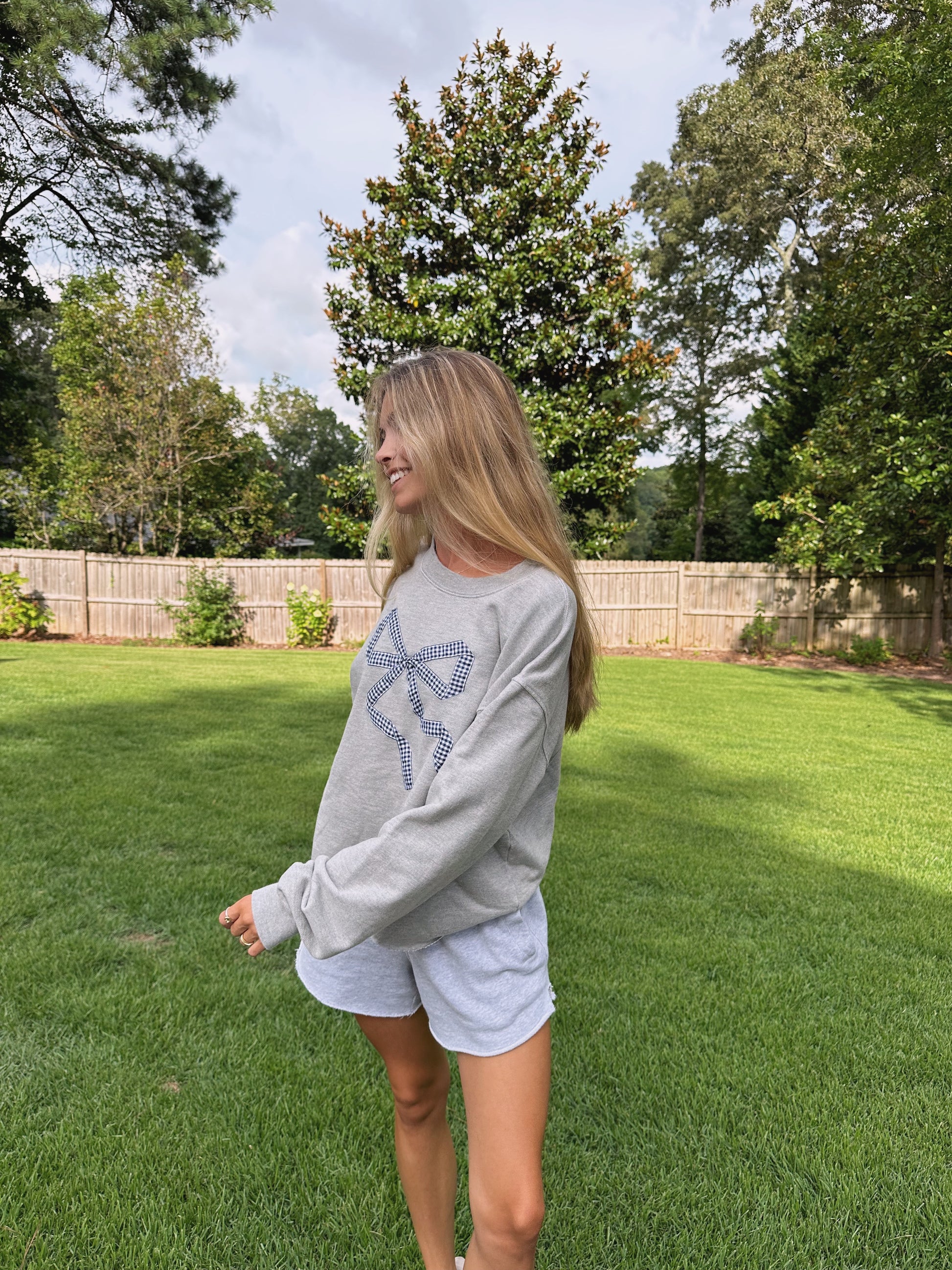 The signature front bow crewneck is the perfect addition to your wardrobe!! My favorite layering piece. An added bonus — this crewneck is made in the usa! And the terry cloth material gives this piece extra character and style.