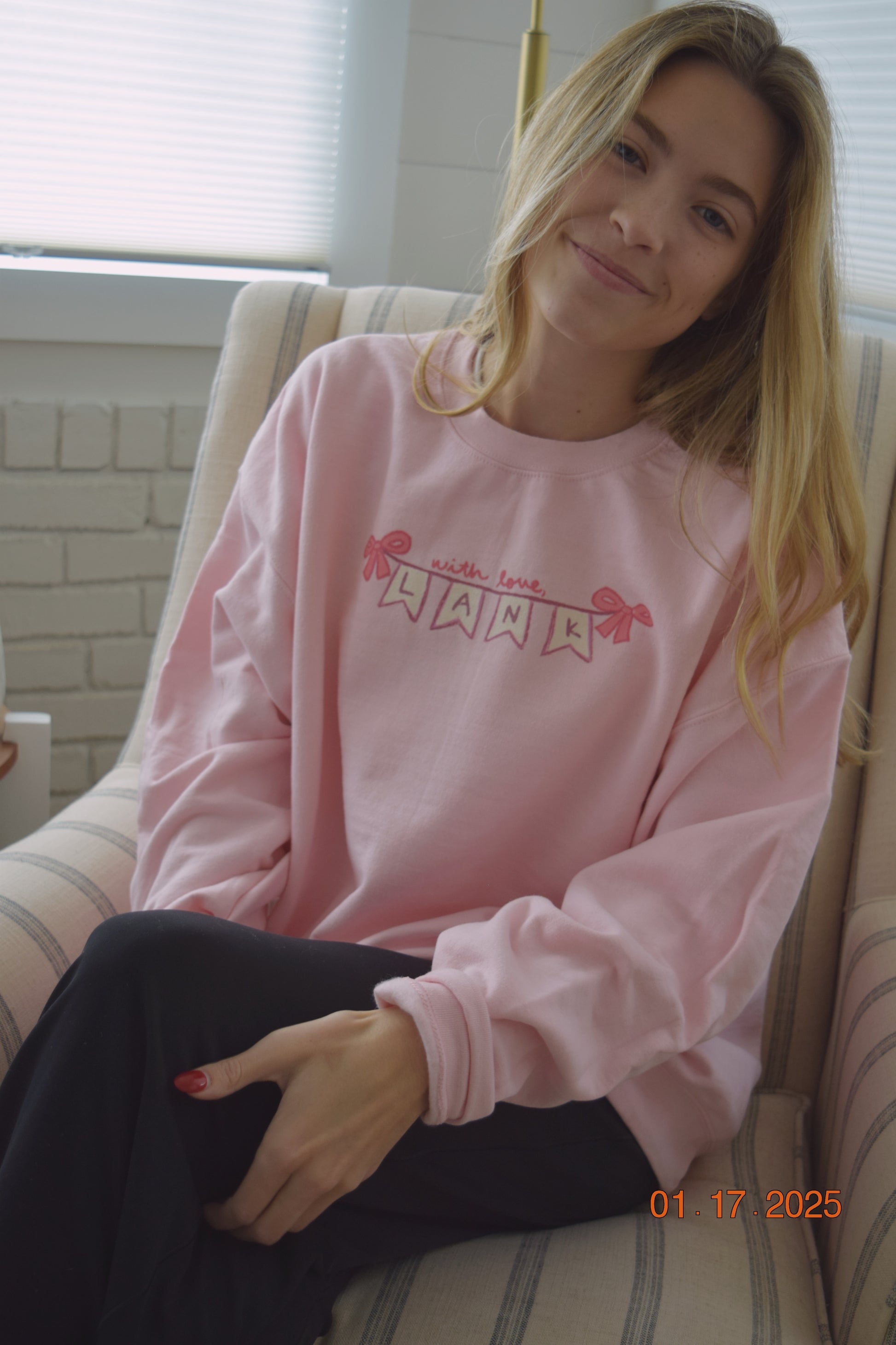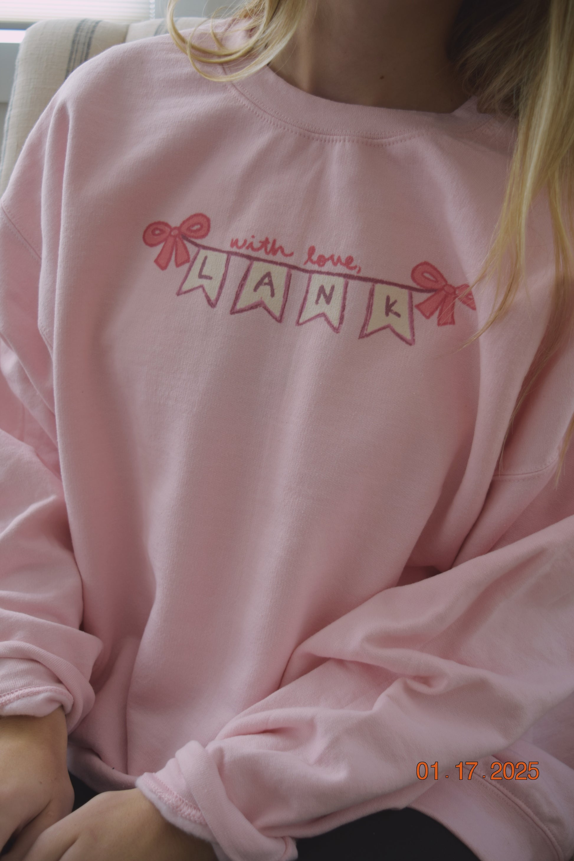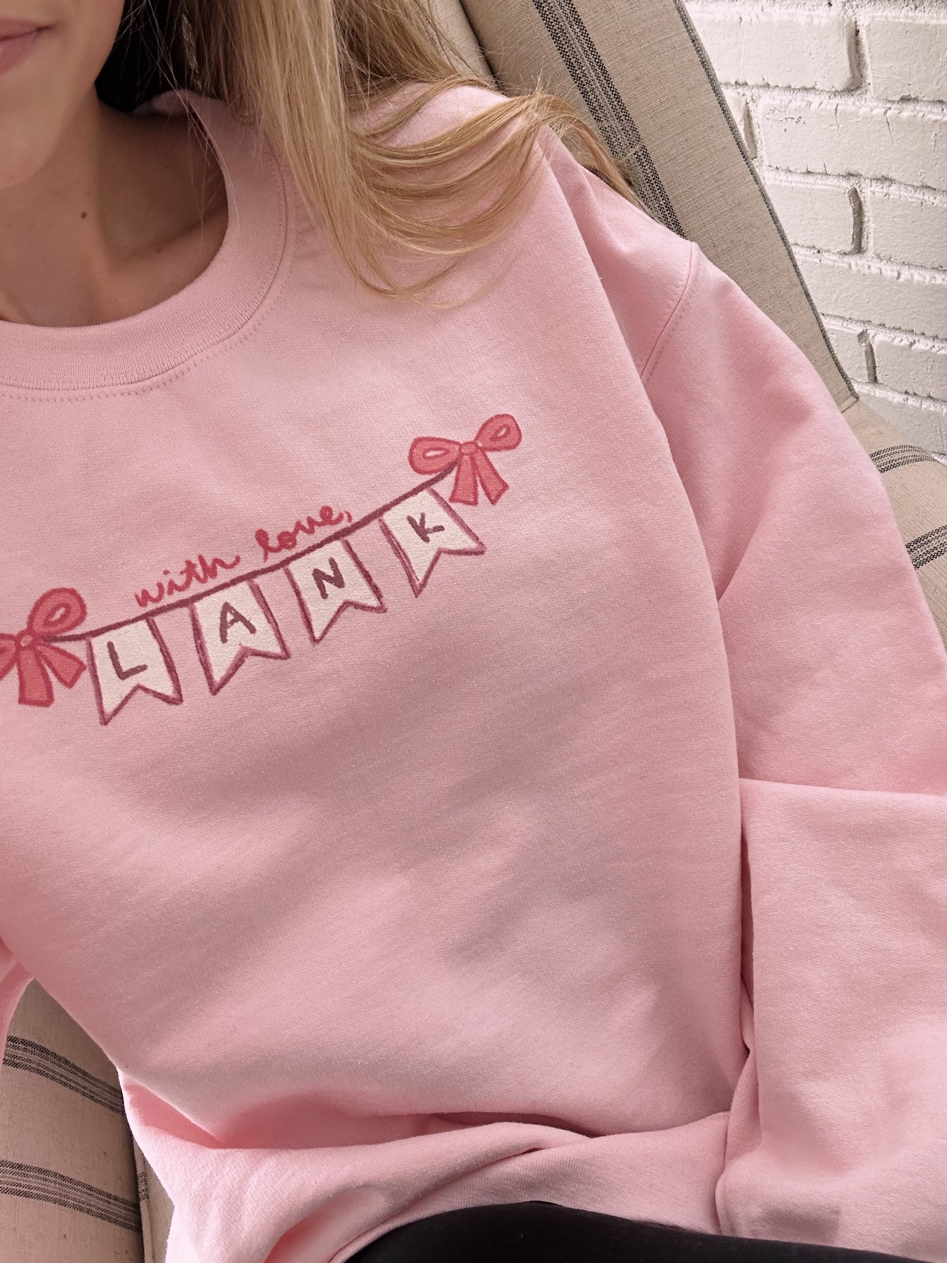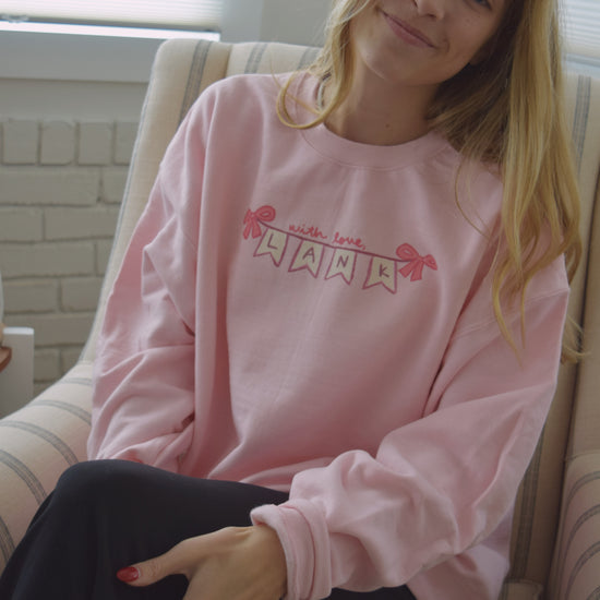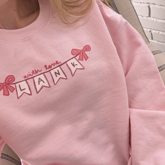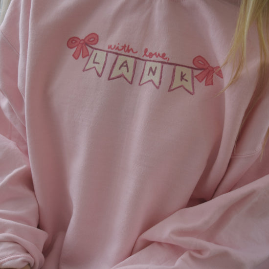 Featured in this design is a hand drawn "With love, Lank" banner! A subtle way to rep WLL and Valentine pink! Cozy up in this soft spun crewneck for the winter weather.