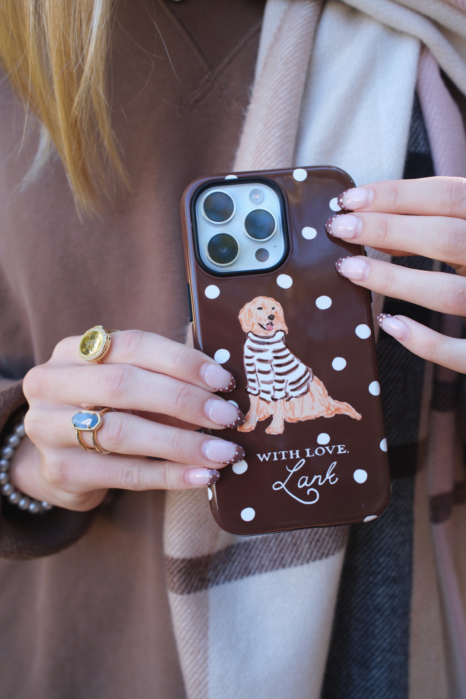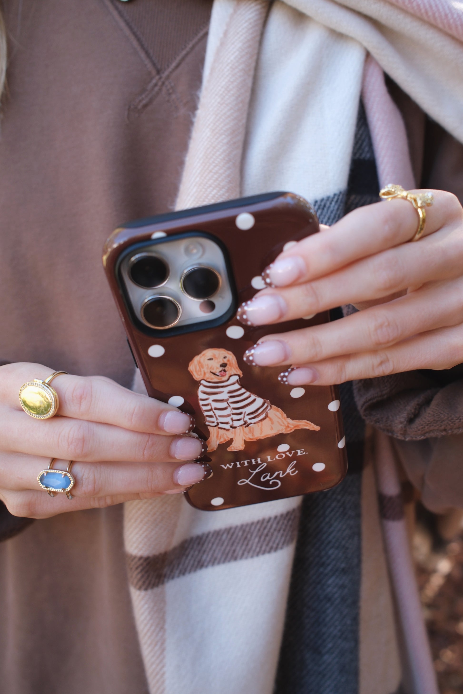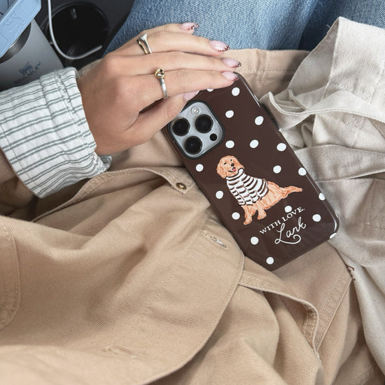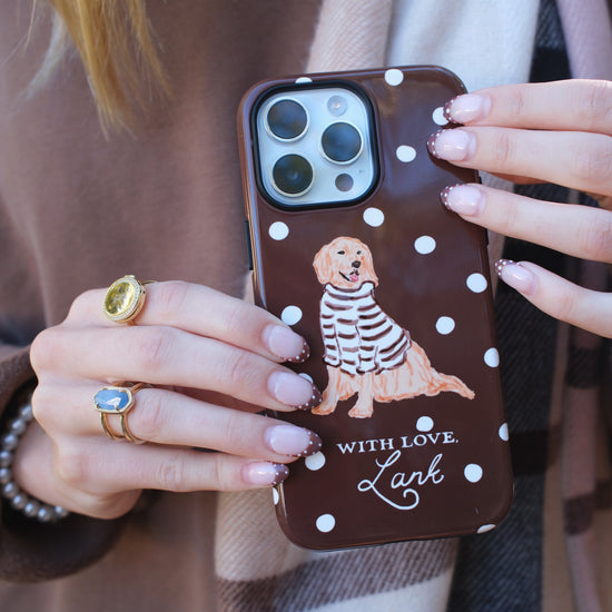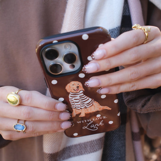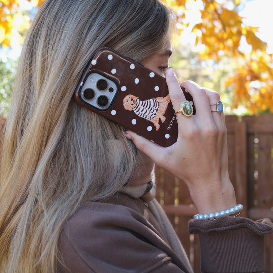 An all new way to style the With Love Club Bud! Jump into fall with this mocha polka dot case. Pairs nicely with just about any fall ootd!