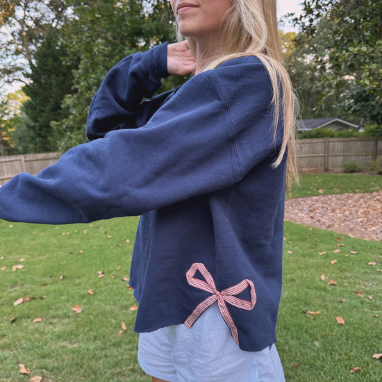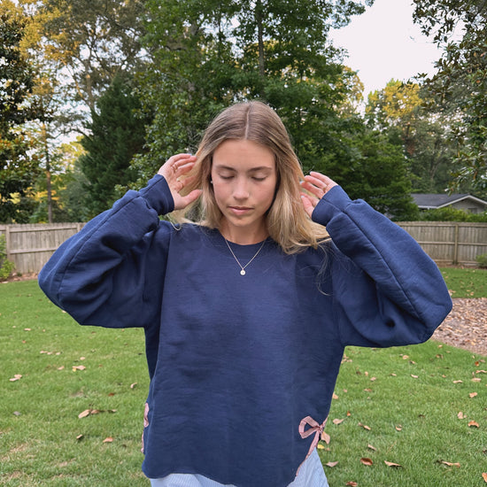 Bows!! In this piece, I’ve upgraded an essential sweatshirt with side bows — adding character, class, and comfort. Each stitch has been sewn with love.