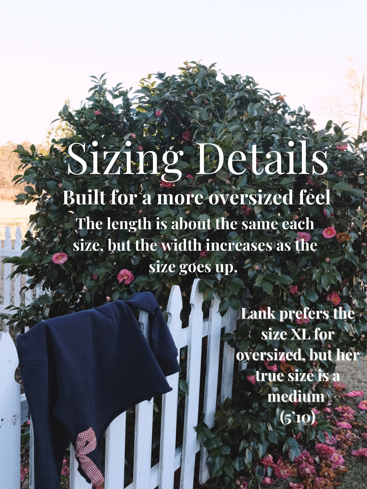 Sizing: *Lank (model) is wearing size XL for an oversize fit, but her true size is a medium for more fitted style. (height: 5'10)