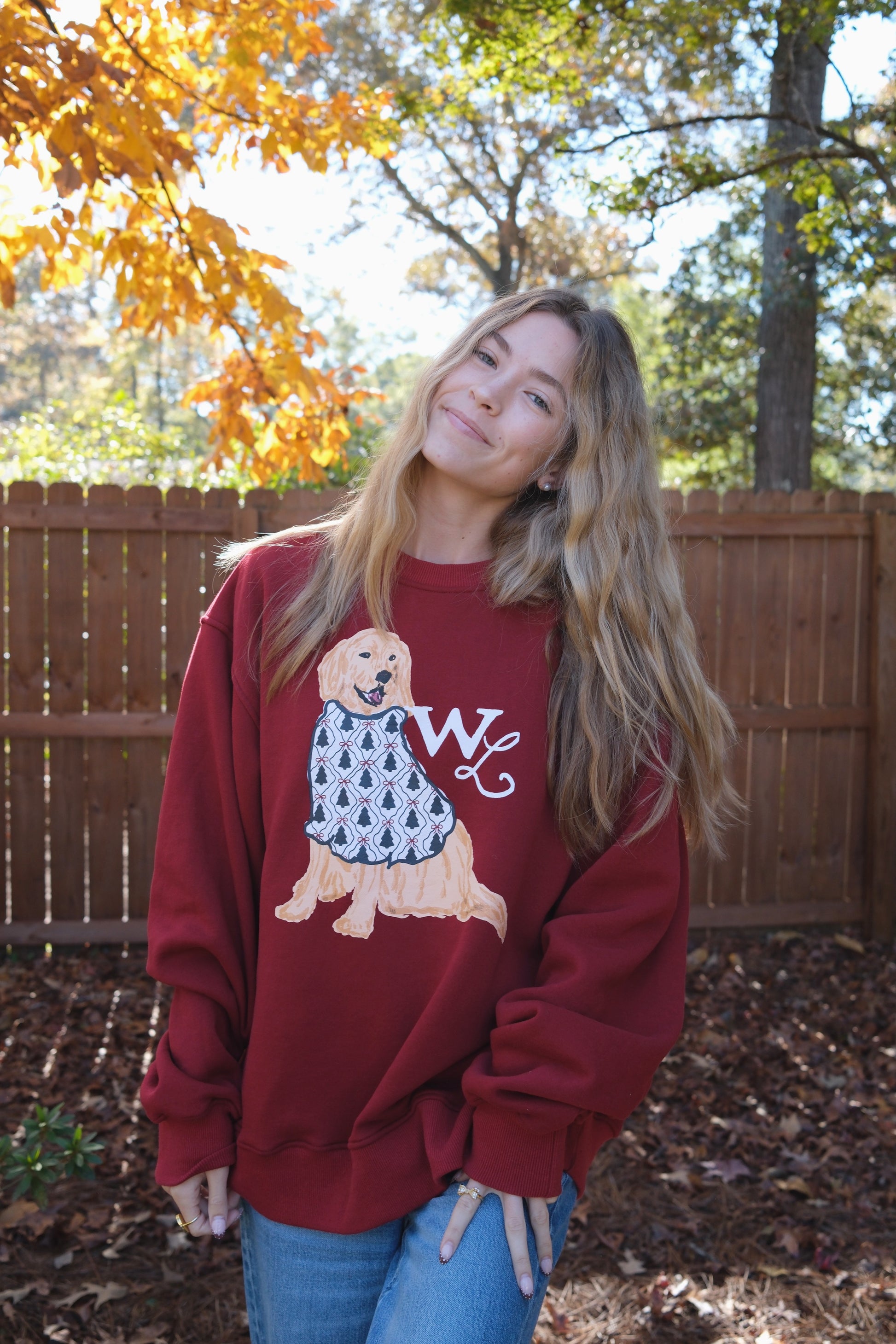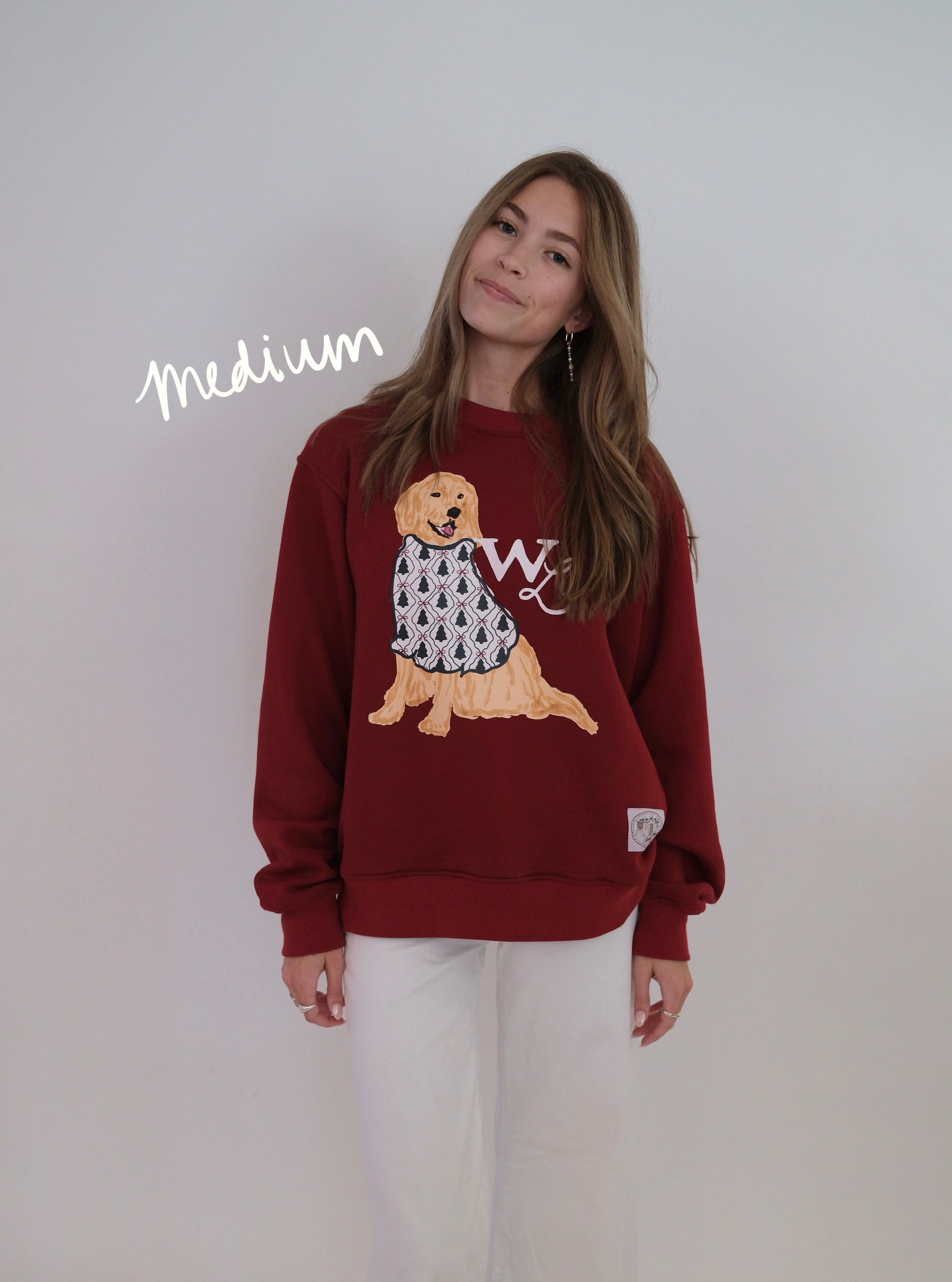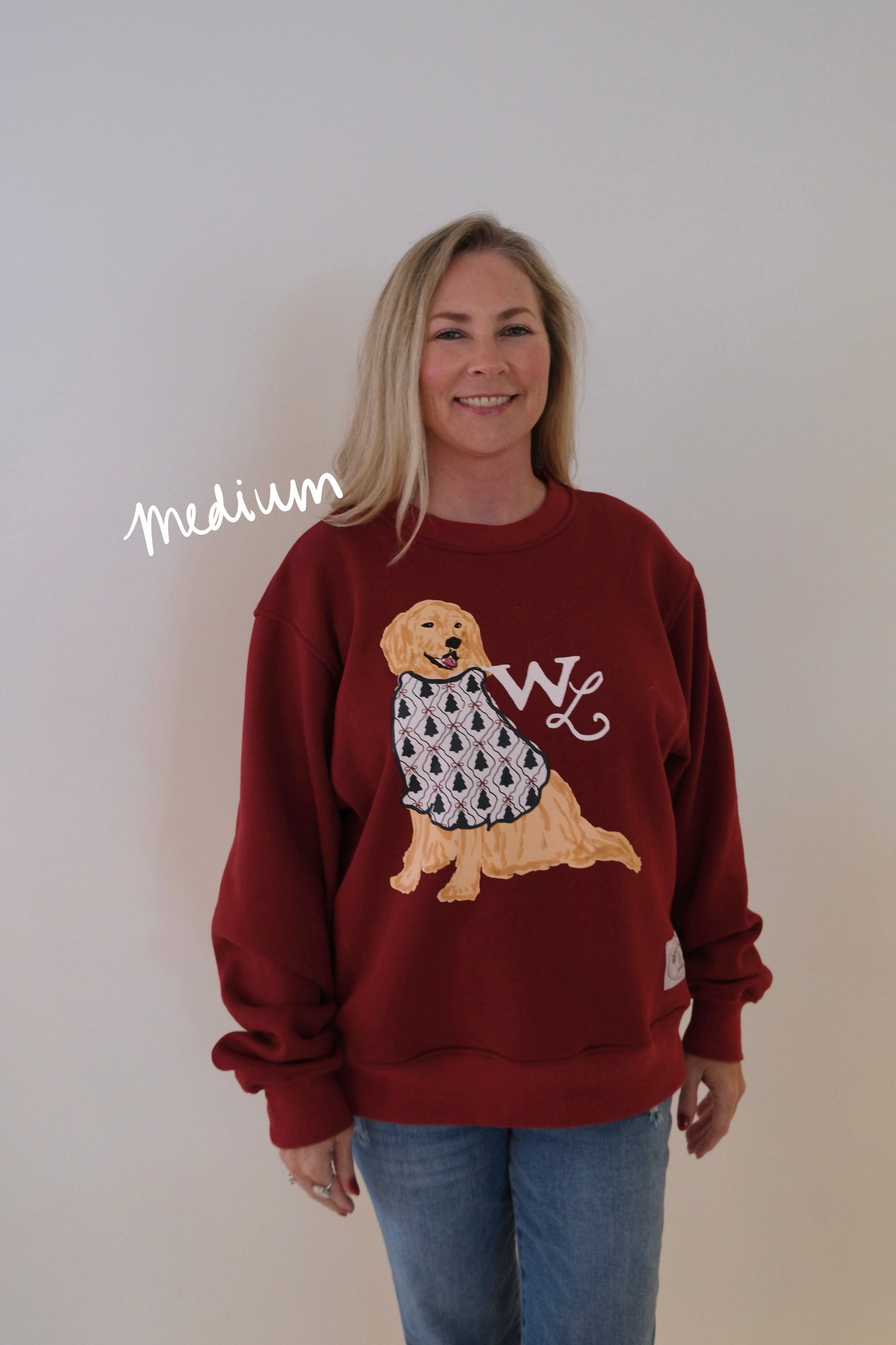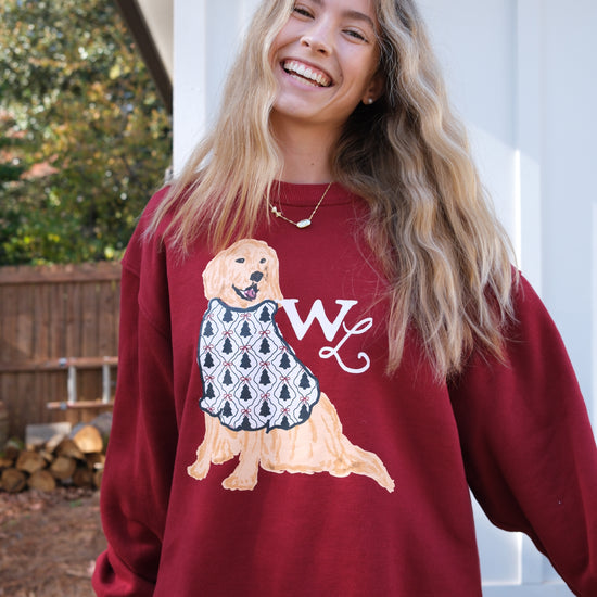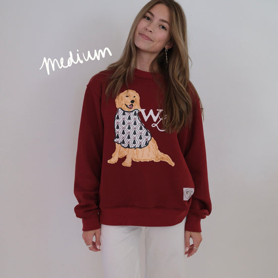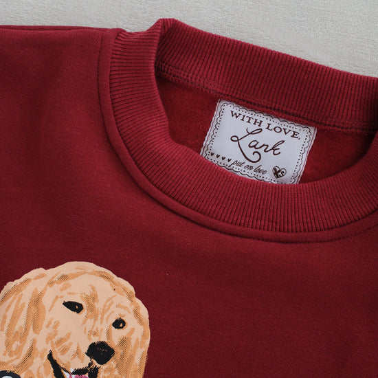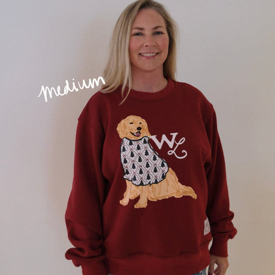 This deep holiday red crew features Charlie in a hand-drawn green-and-cream winter pattern, printed and patch-applied for that signature With Love, Lank handmade touch. It’s merry, cozy, and celebrates the little joys of winter.