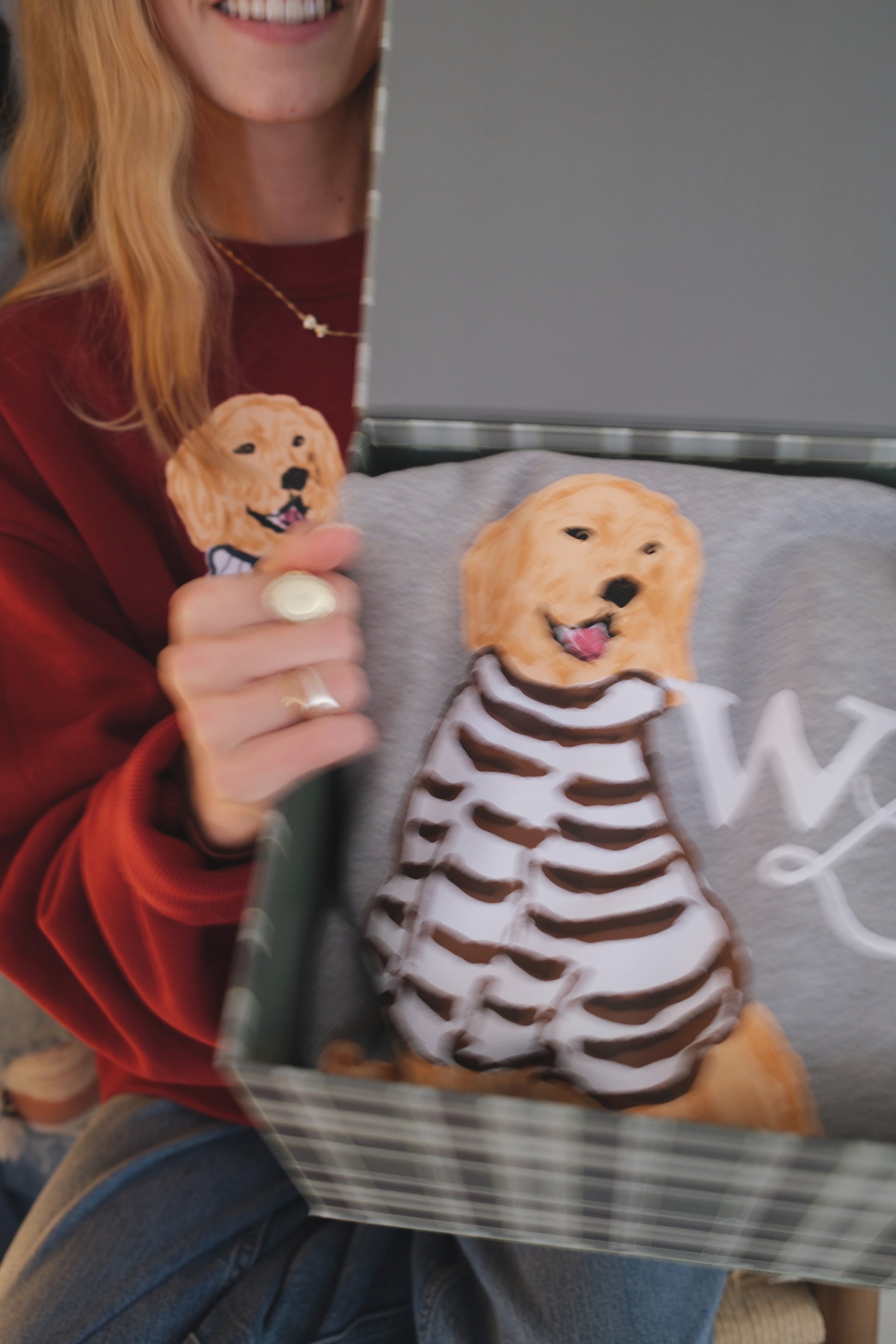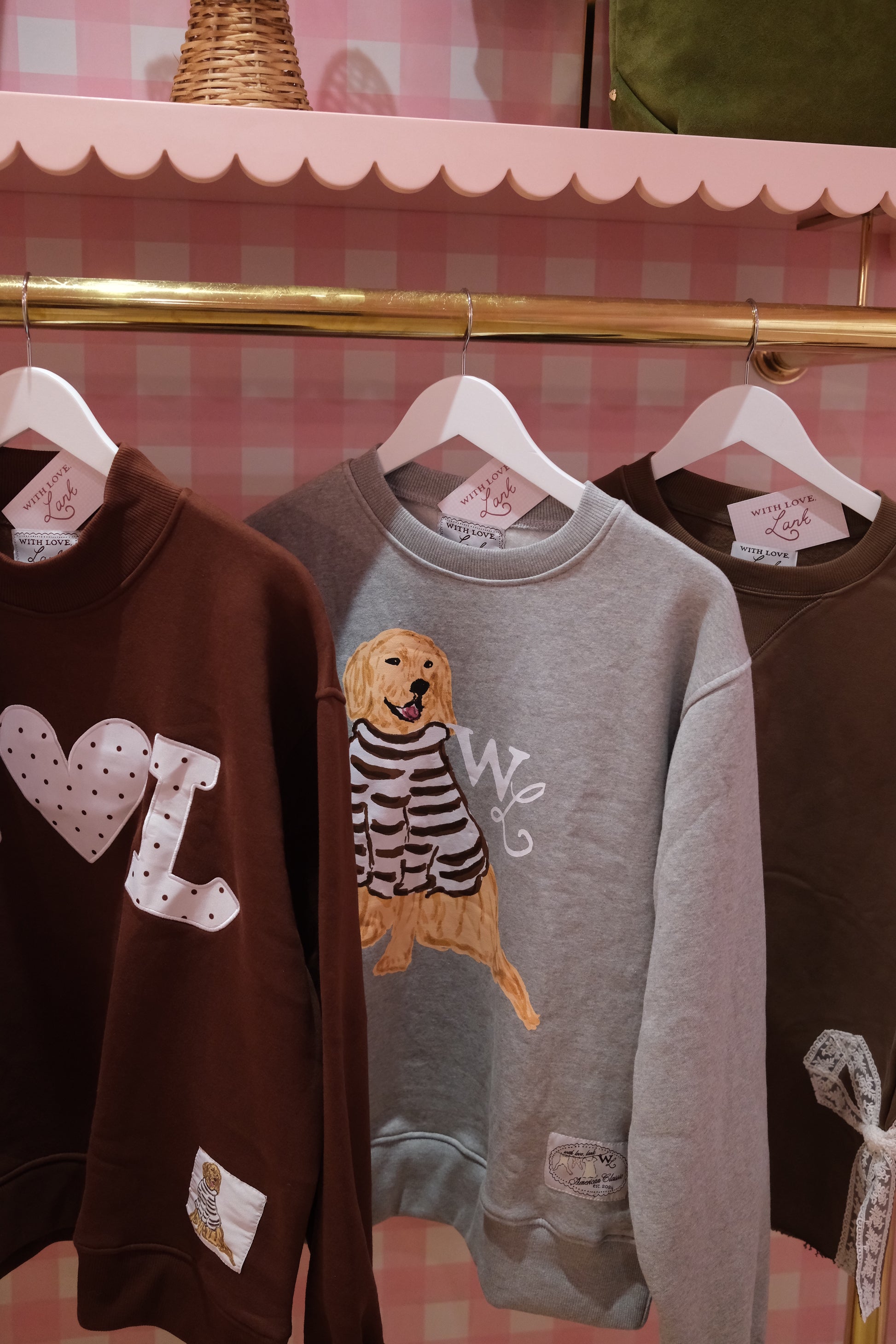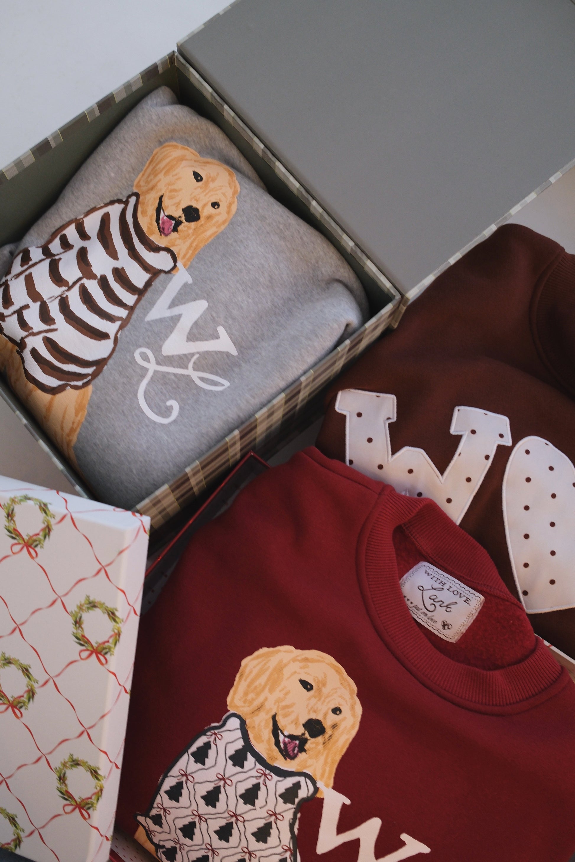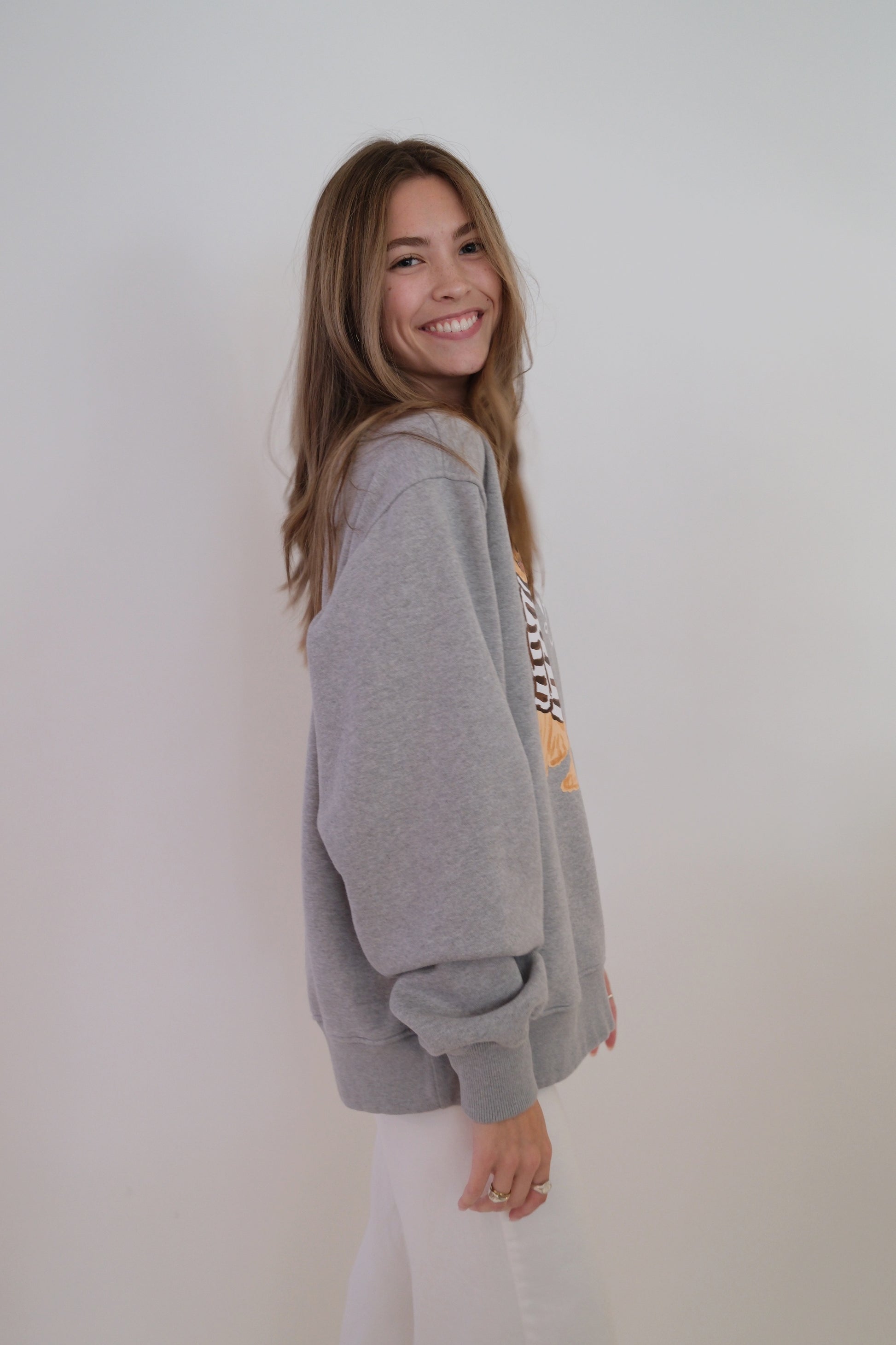 Set on a soft heathered grey base, Charlie the Golden sits front and center in his hand-drawn cocoa-striped sweater. The look is warm and nostalgic —a sweatshirt that feels like a favorite from the very first wear.