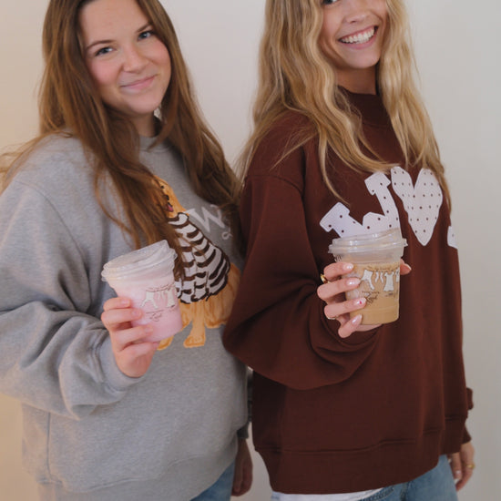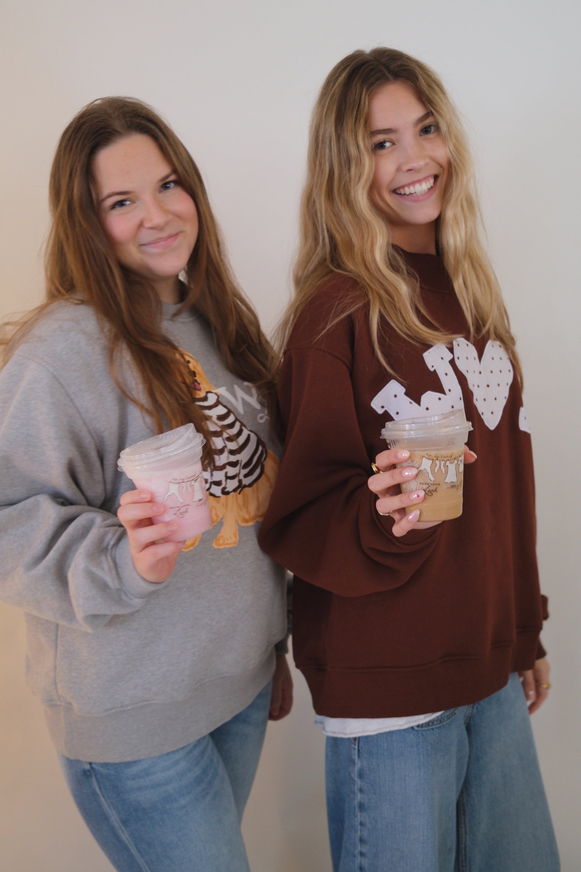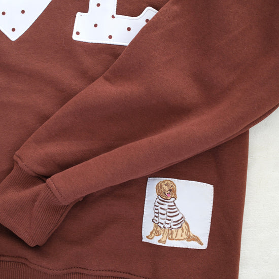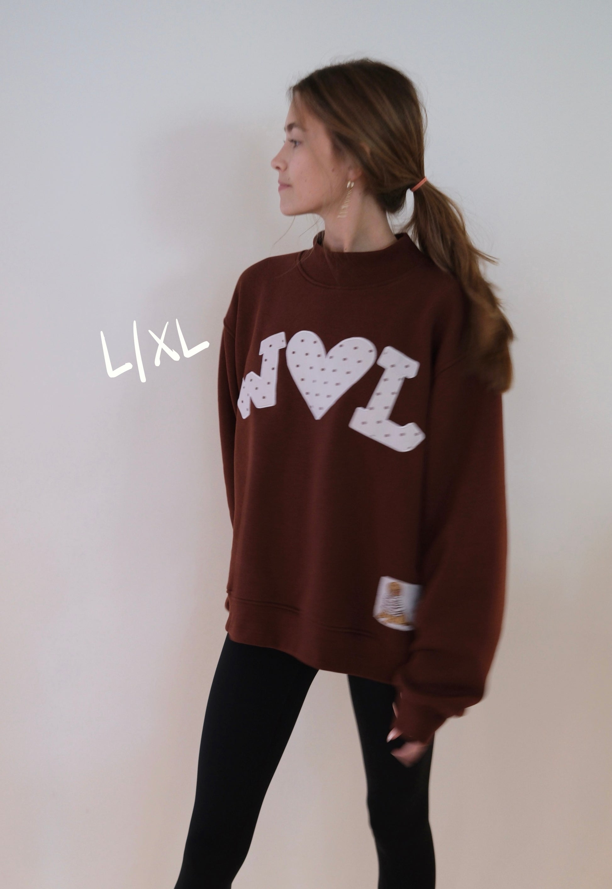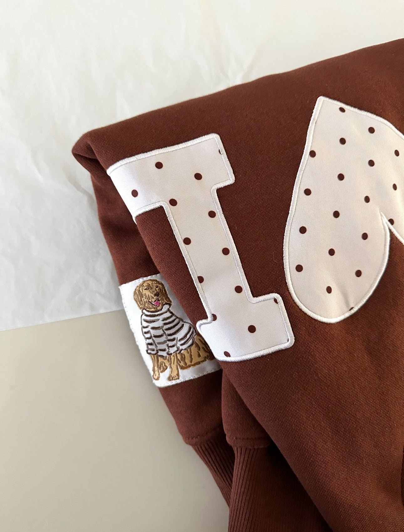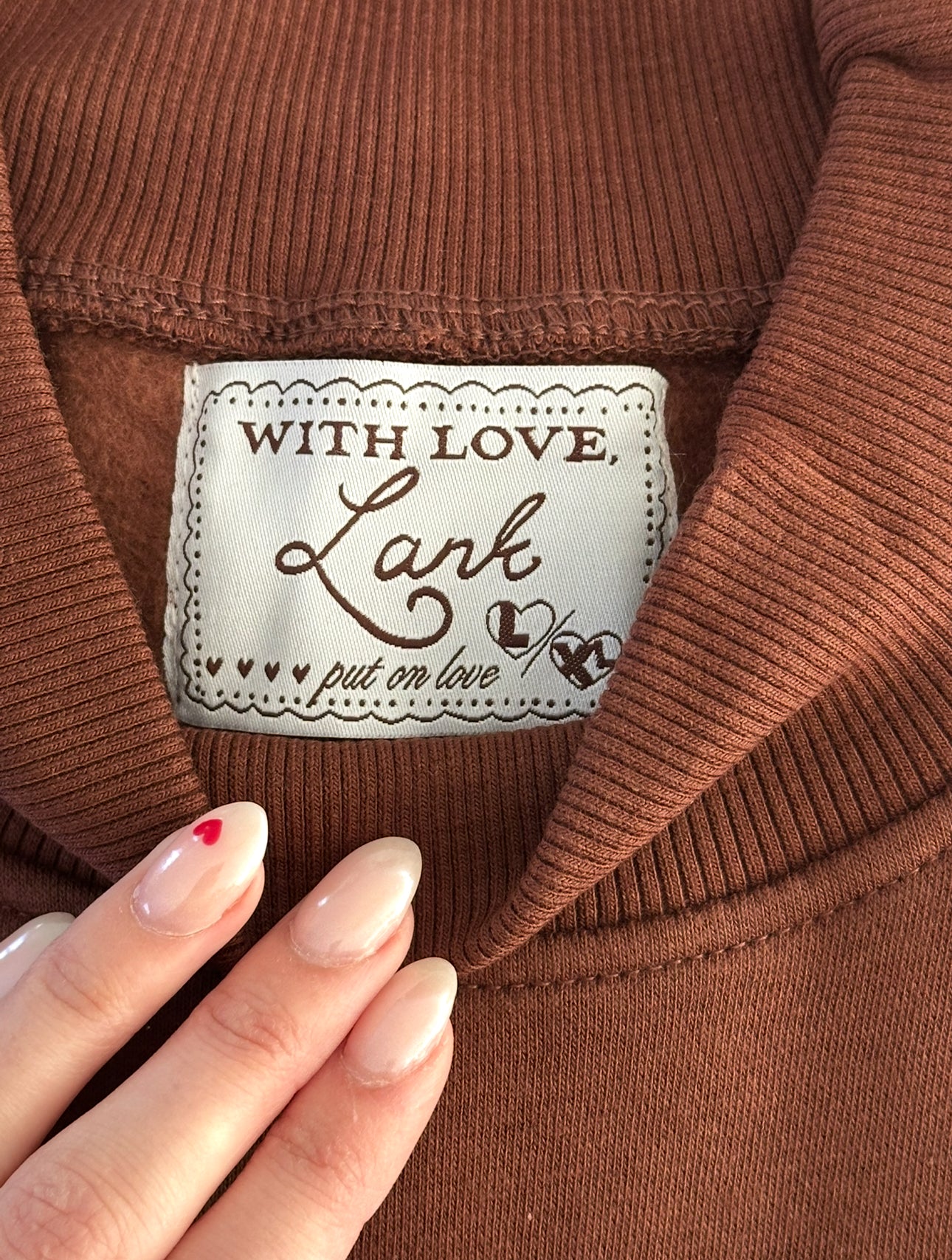 This rich brown mockneck features our signature W♥L appliqué in frosted polka dots for a playful, vintage-inspired touch. Crafted with a soft, comfortable feel and that slightly slouchy, lived-in fit WLL is known for.