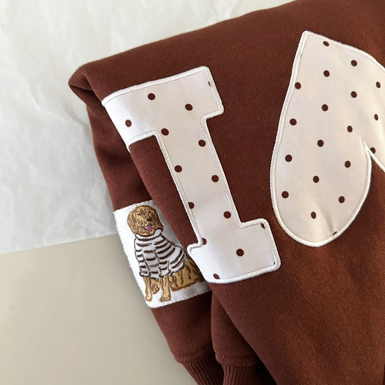 Finished with a hand-drawn, embroidered Charlie the Golden patch, it ties perfectly into the Frost & Fetch collection — a nod to chilly days, warm traditions, and the pieces you reach for again and again.