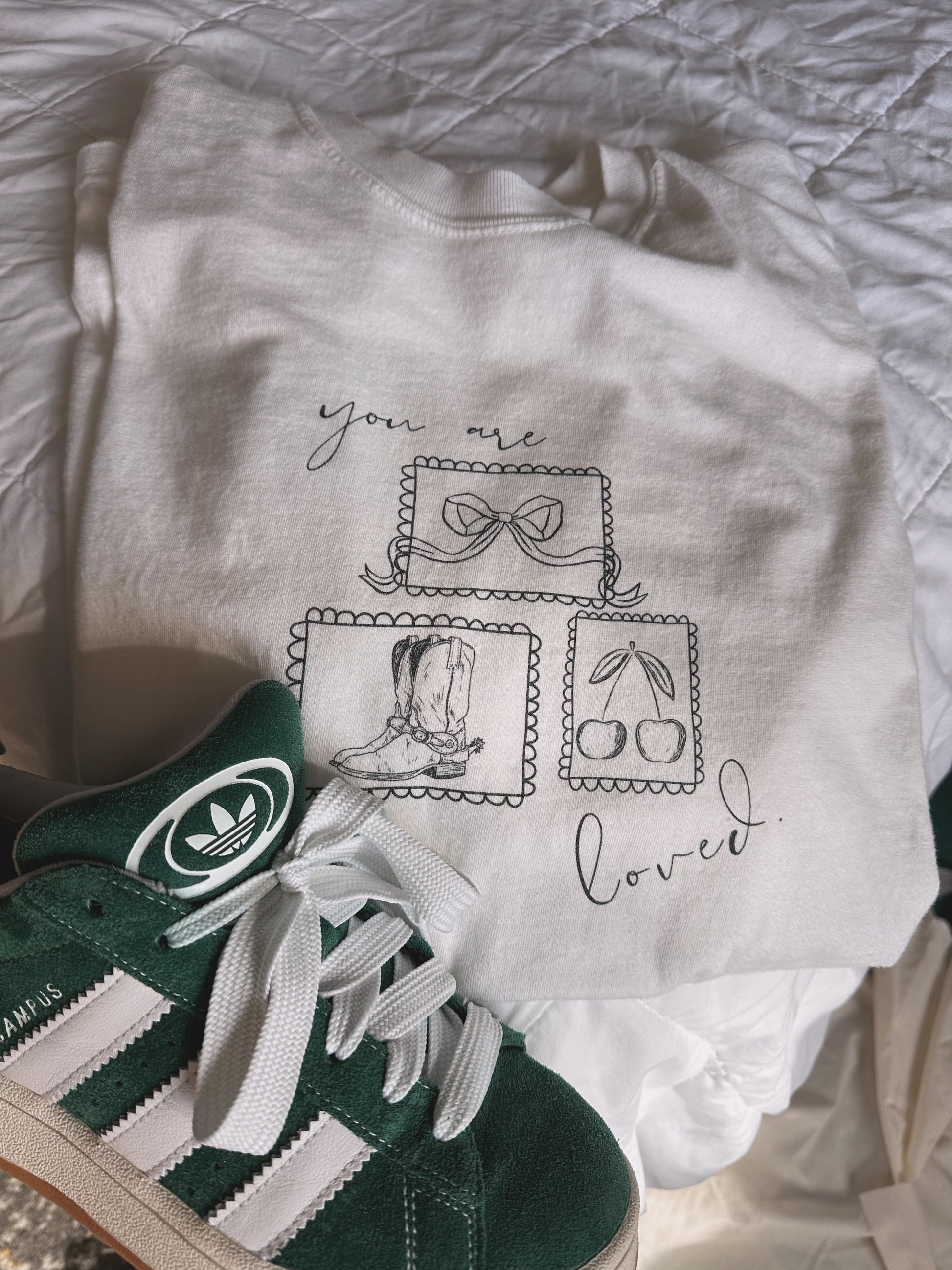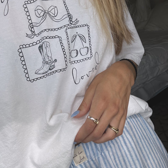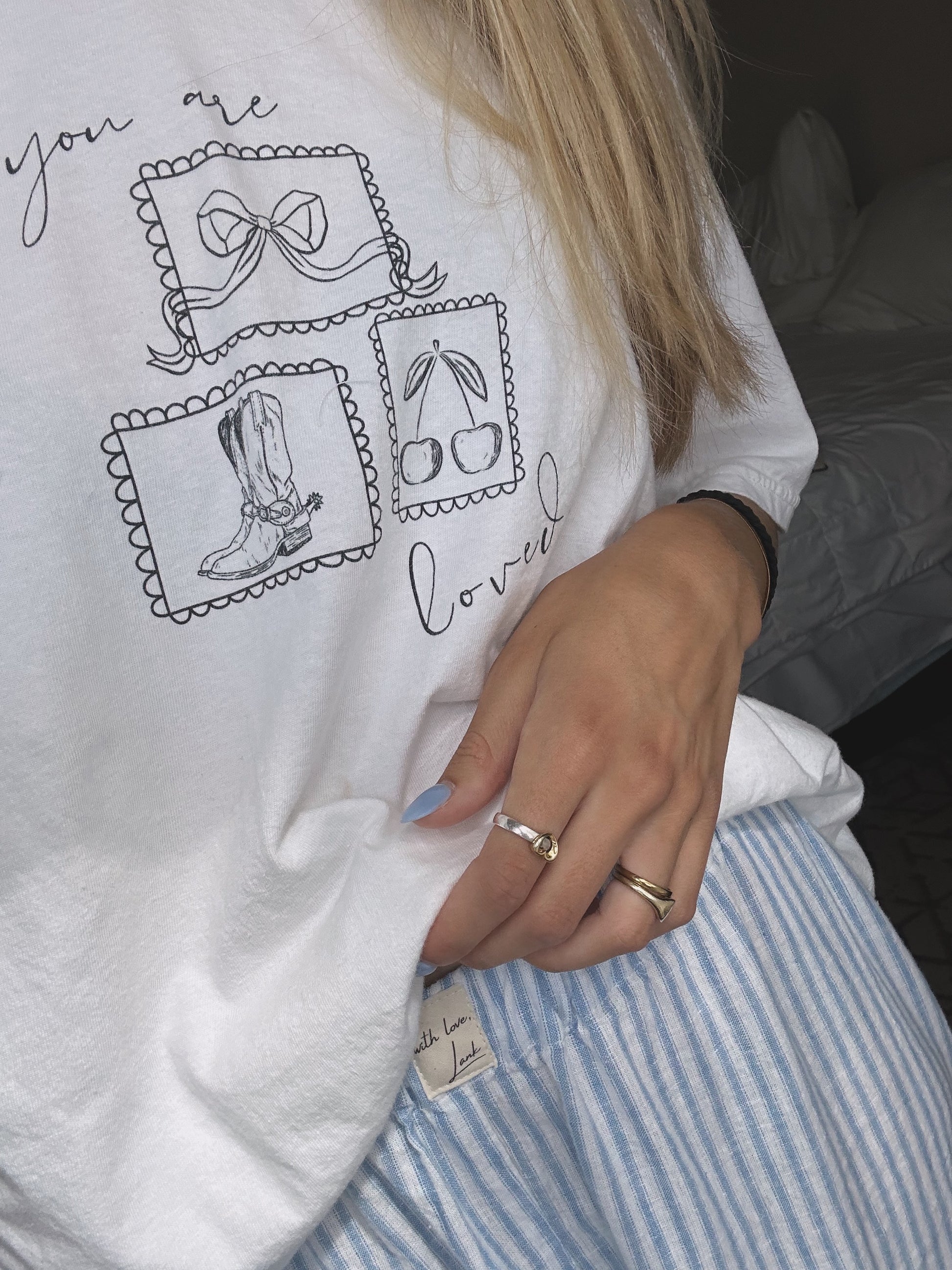 The comfy tee also features some lighthearted elements -- bows, boots, and cherries -- to pair nicely with any fun summer fit.